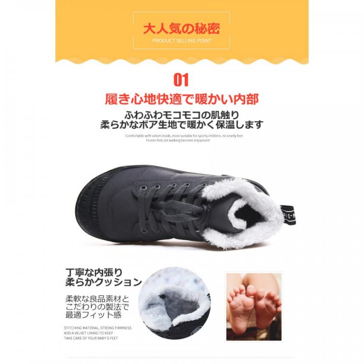 子供「保温性」「雪道対応ソール」のウインター機能を兼ね備えたショートブーツです。軽いの高品質な材料製だから、行動便利! 軽く、暖かく、カジュアルなデザインは、ファッション性も高いため寒さが厳しい時期にはピッタリなブーツです。 雪、雨の日に、滑りにくい!内側は長さあるボアが密度高く敷き詰められているので、足を柔らかく優しく保温! つま先に保護設計を採用しています、ケガ防止!足をしっかり保護できます!両サイドに伸縮性のある設計で履き脱ぎ簡単! シンプルなデザインでさまざまなファッションに合わせやすい、ジムなどの室内で履きはもちろん、アウトドアやレジャーにも大人気 の一足です。