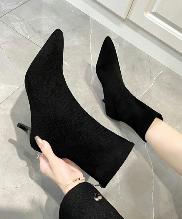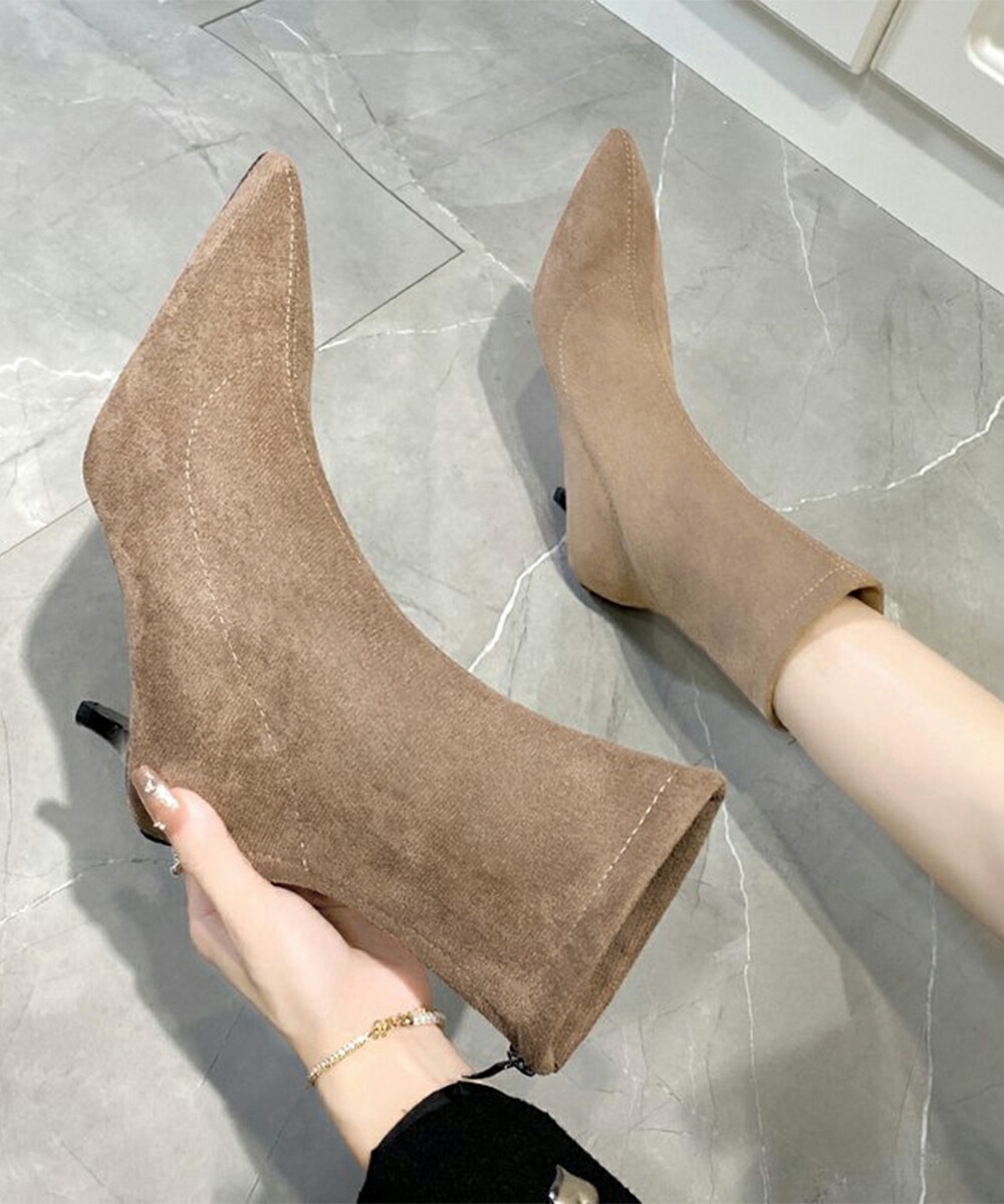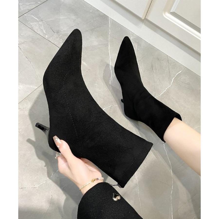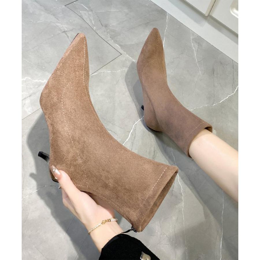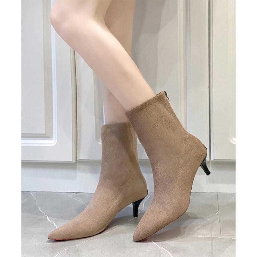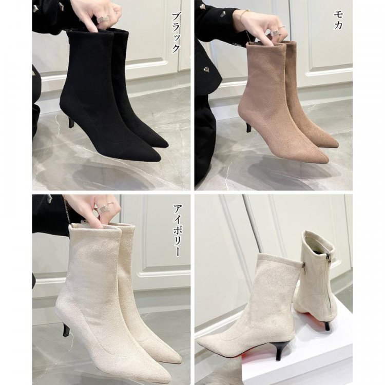 韓国上品ローヒールブーツ ポインテッドトゥ靴 ピンヒールシューズ 秋冬 疲れない ミドルブーツ 歩きやすい バックジップ