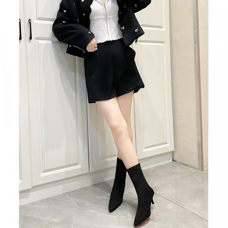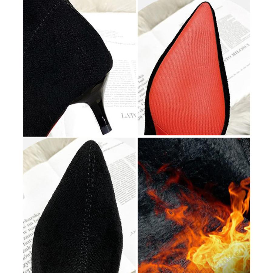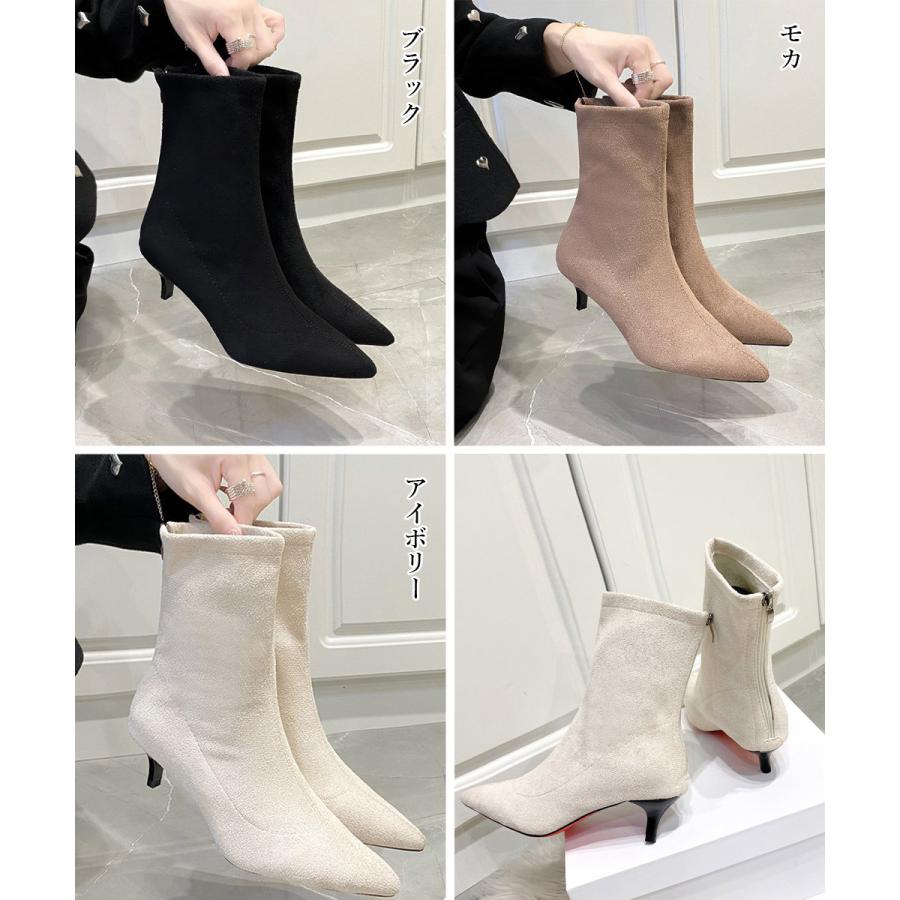 - ファーブーツ ブーティー 太ヒール 韓国