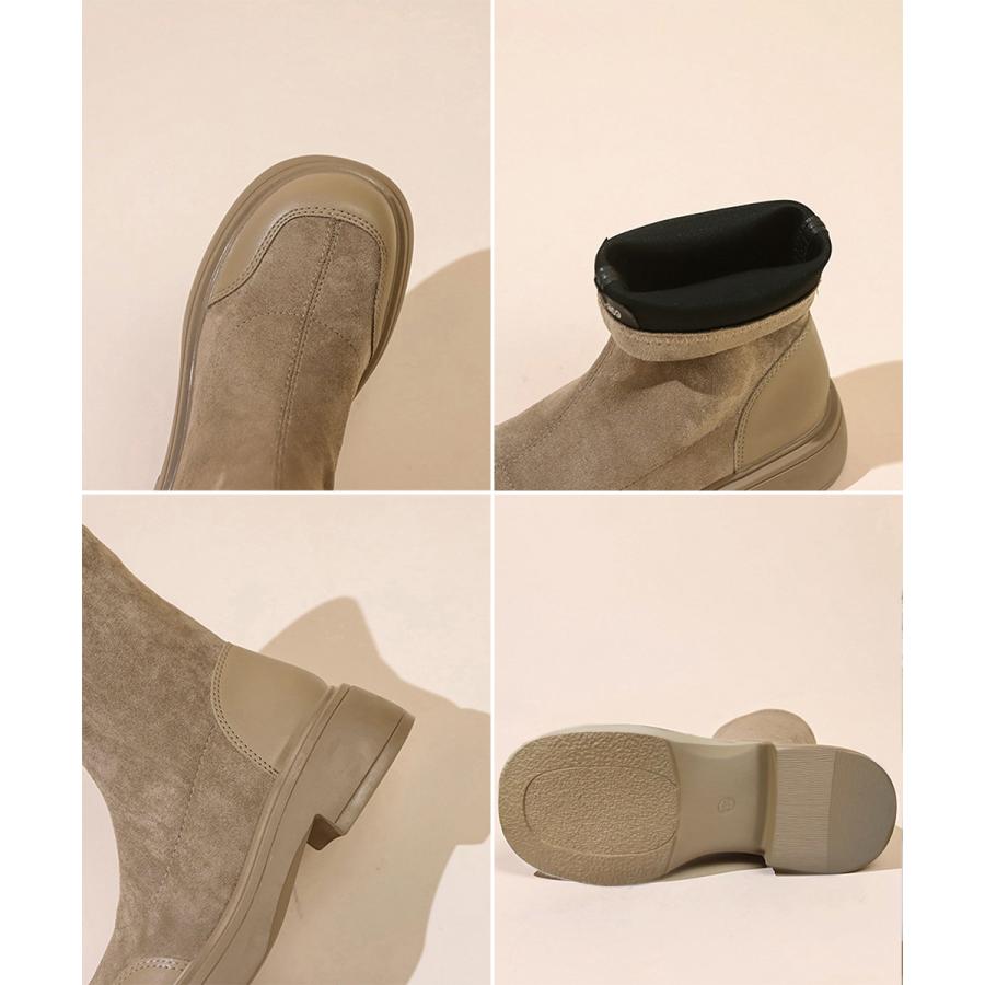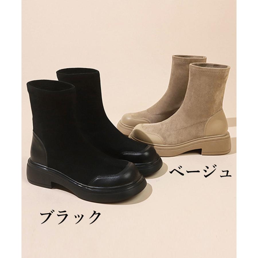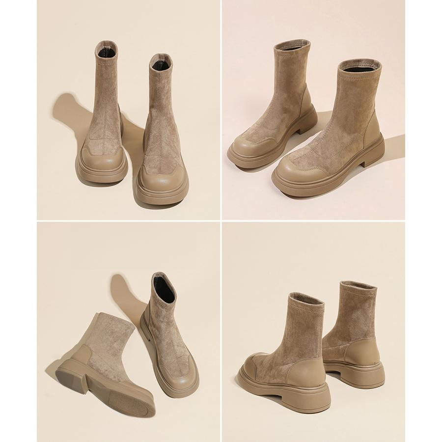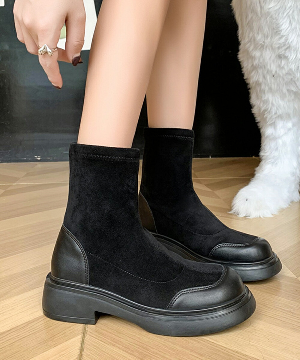 レトロ 厚底ブーツ ラウンドトゥ 美脚 ブーティ レディース 秋冬 ストレッチブーツ 韓国 歩きやすい 秋冬靴ローヒール