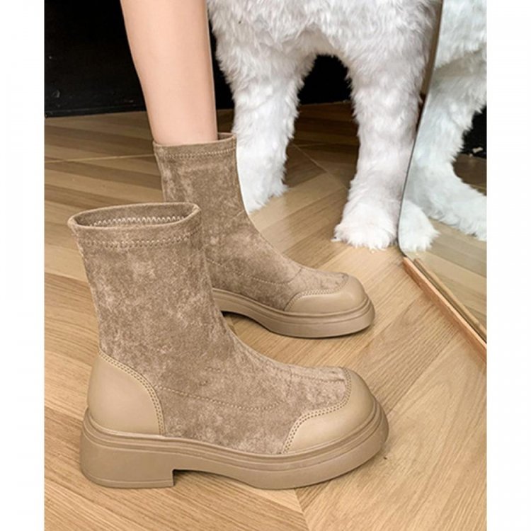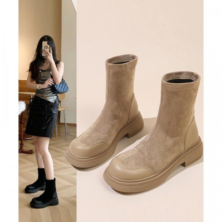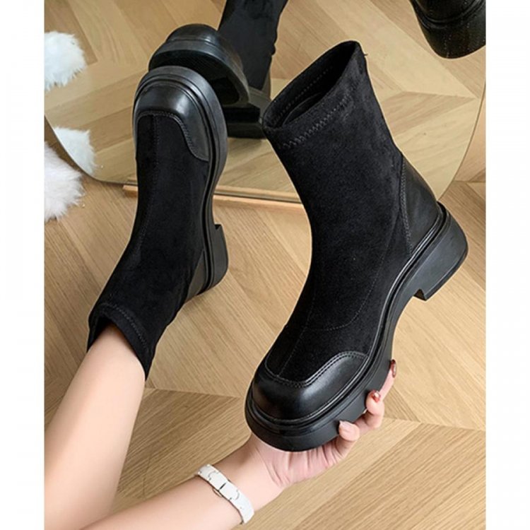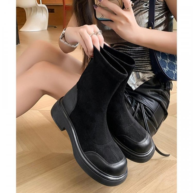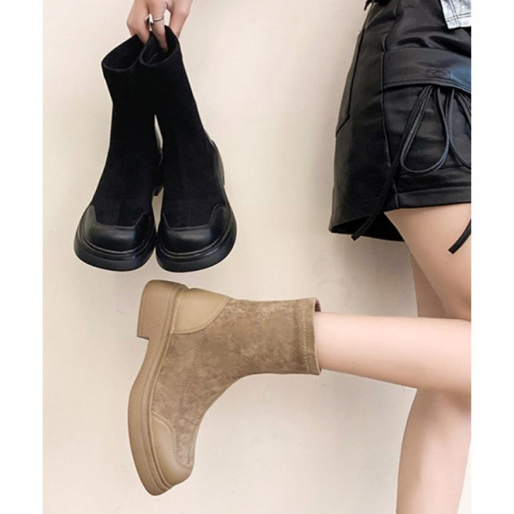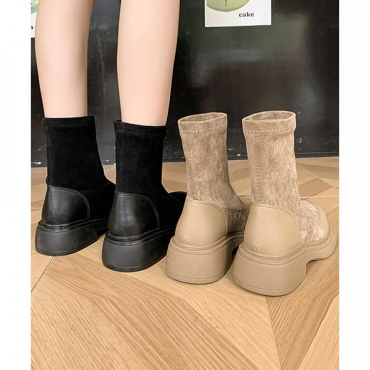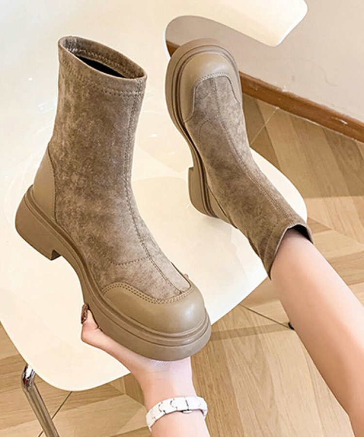 レトロ 厚底ブーツ ラウンドトゥ 美脚 ブーティ レディース 秋冬 ストレッチブーツ 韓国 歩きやすい 秋冬靴ローヒール