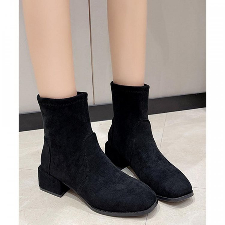 シンプルだからこそ履くだけで理想の美脚を手に入れるスエード調ショートブーティ