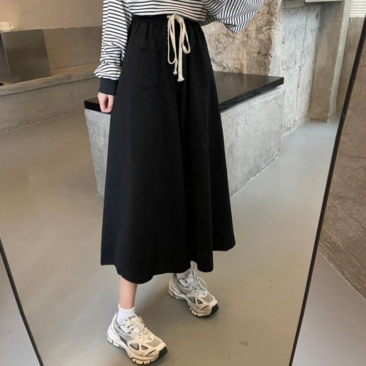 ウエストゴムに腰紐仕様、着脱簡単で細かい調節ができるので体に程よくフィットする履き心地