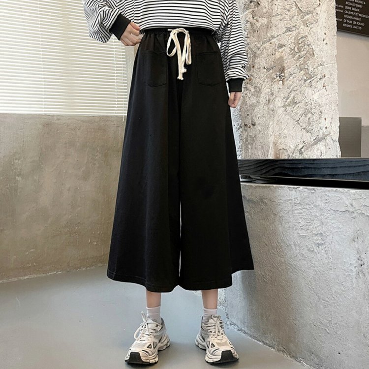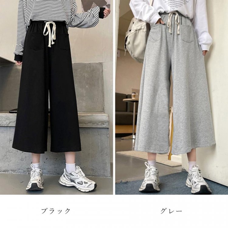 レディース ポケット付き カジュアルパンツ 体型カバー アンクル丈ズボン ハイウエストフレアパンツ ゆったり無地ボトムス