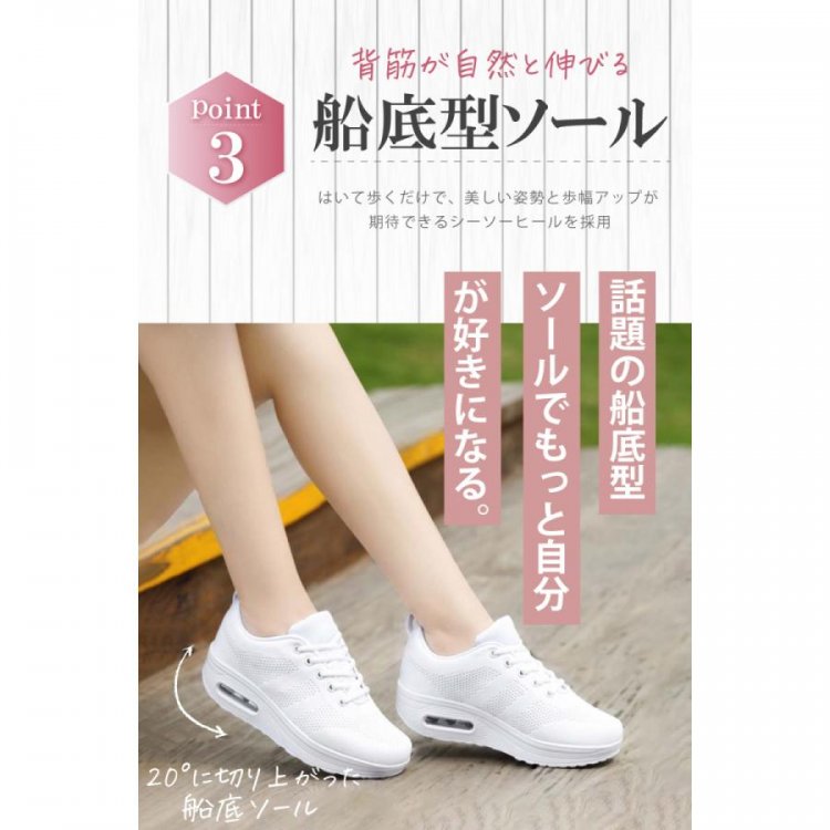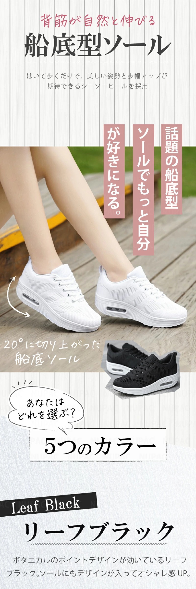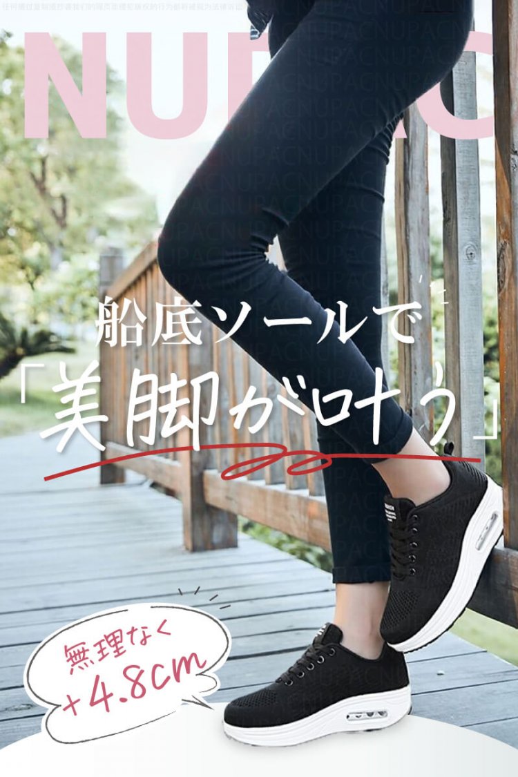 履いて歩くだけで、美しい姿勢と歩幅アップが期待できるシーソーヒールを採用