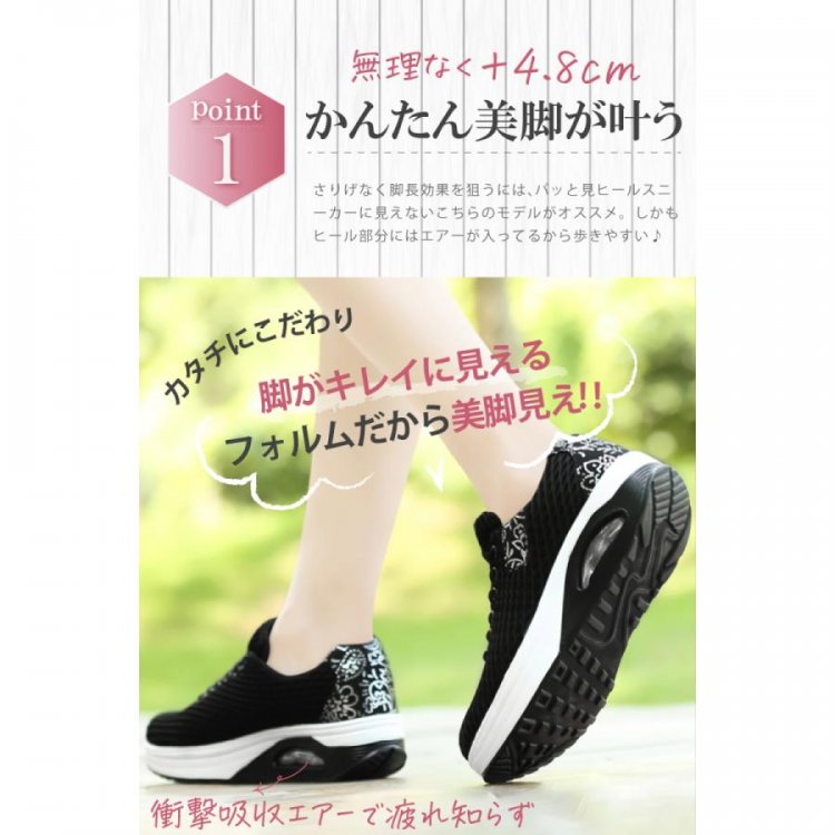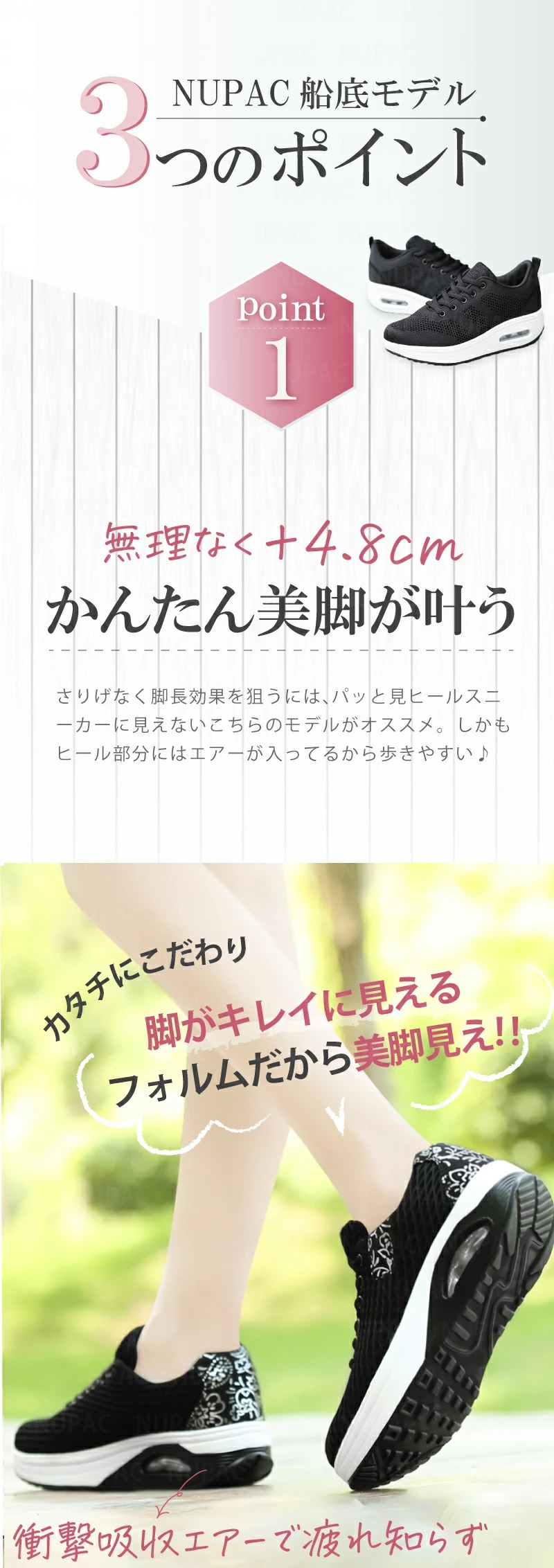 さりげなく脚長効果を狙うには、パッと見ヒールスニーカーに見えないこちらのモデルがおすすめ。