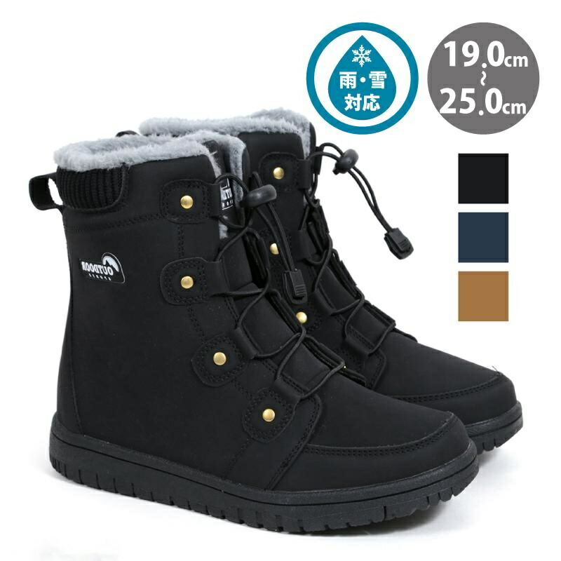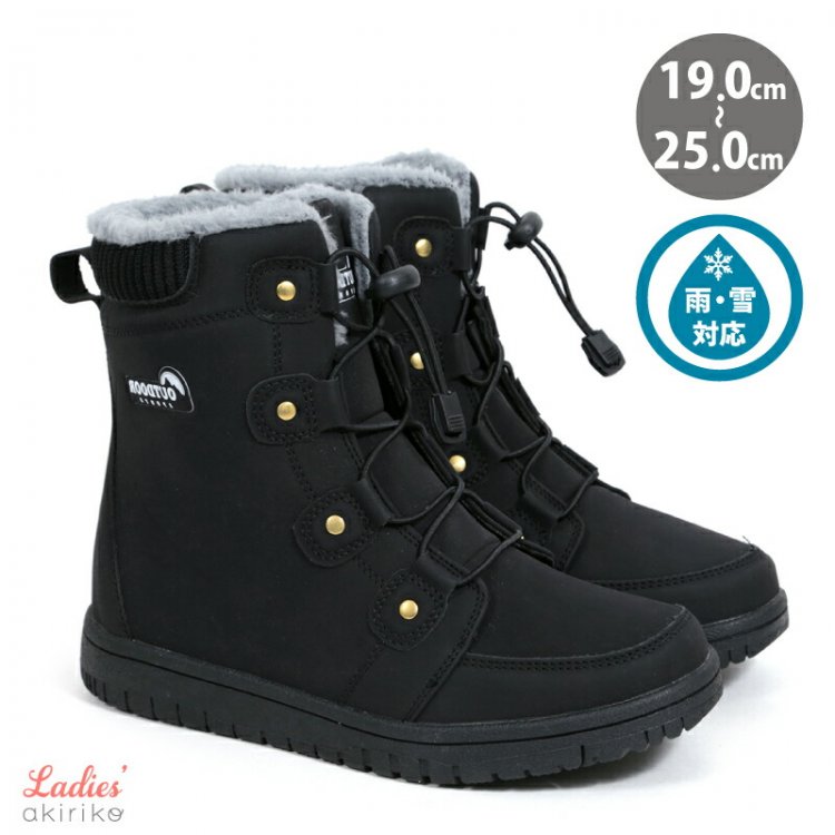スノーブーツ ショート 全天候 4時間防水 履き口ボア ゴムひも グリップソール レディース 19cm~25cm