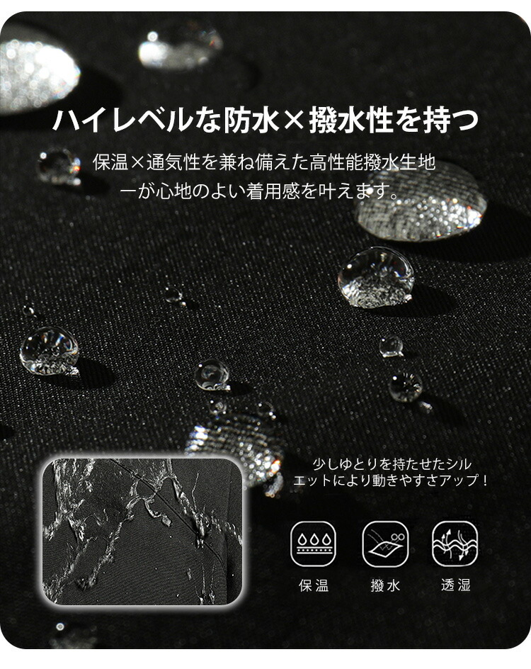 保温×通気性を兼ね備えた高性能撥水生地ーが心地のよい着用感を叶えます。