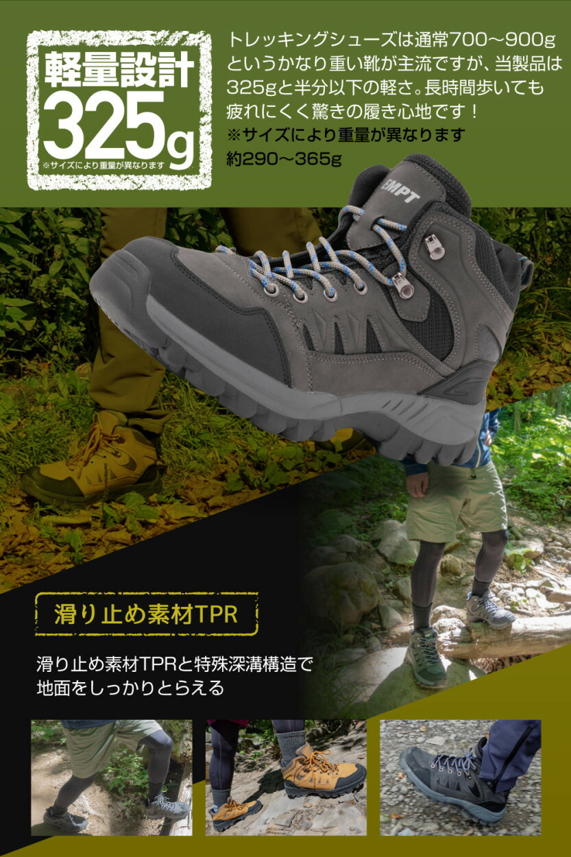 325g トレッキングシューズの平均的な重さが700~900gですので約半分の重さ