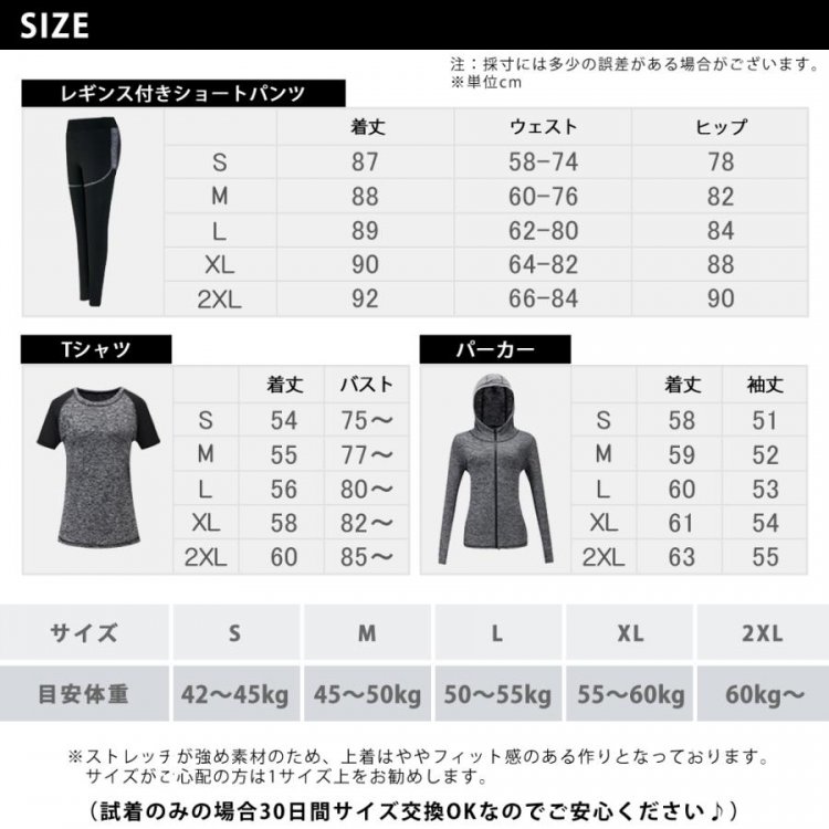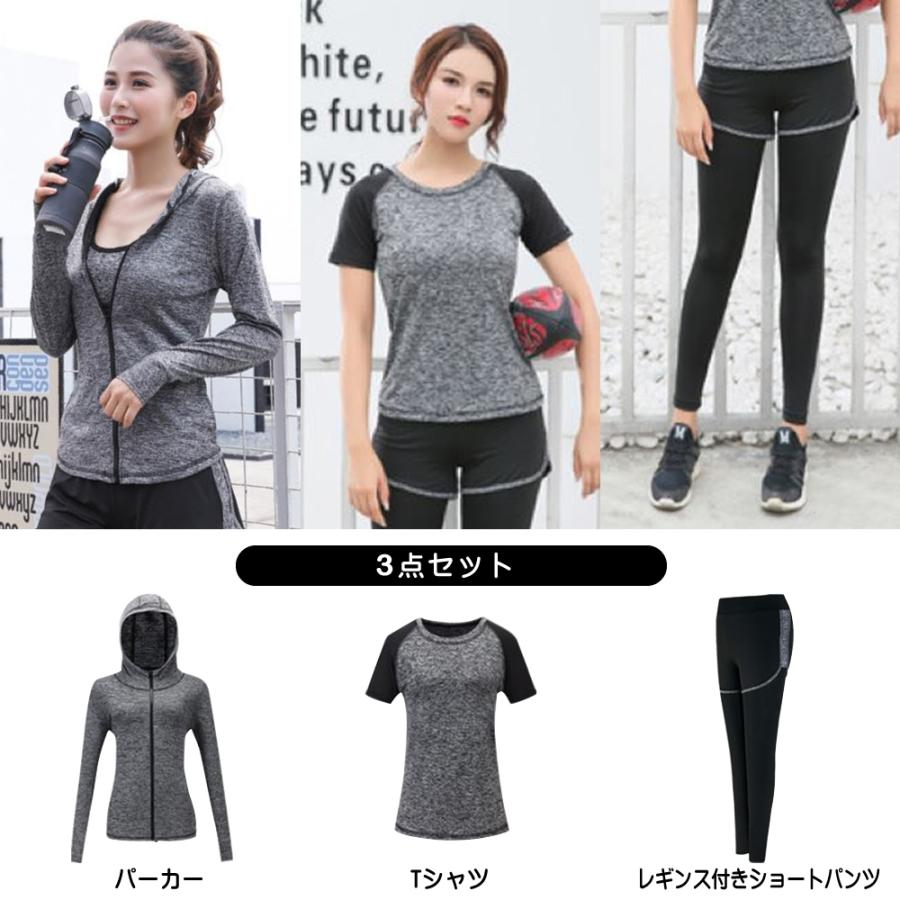 パーカー Tシャツ レギンス付きショートパンツ の3点セット!