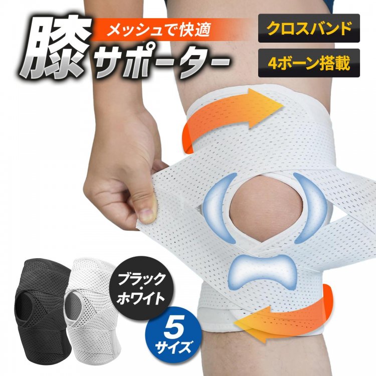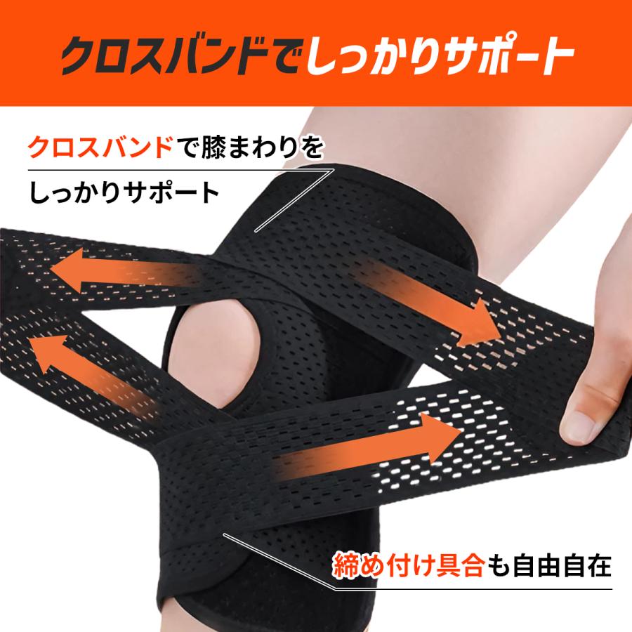 シリコンパッドが膝を左右、下からホールド。グラつきや違和感を抑制し歩行も安心。