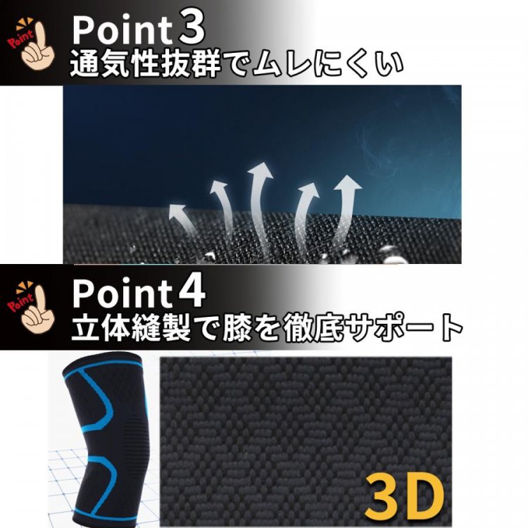 膝に装着するだけで、しっかりサポートし、膝への負担を軽減します。