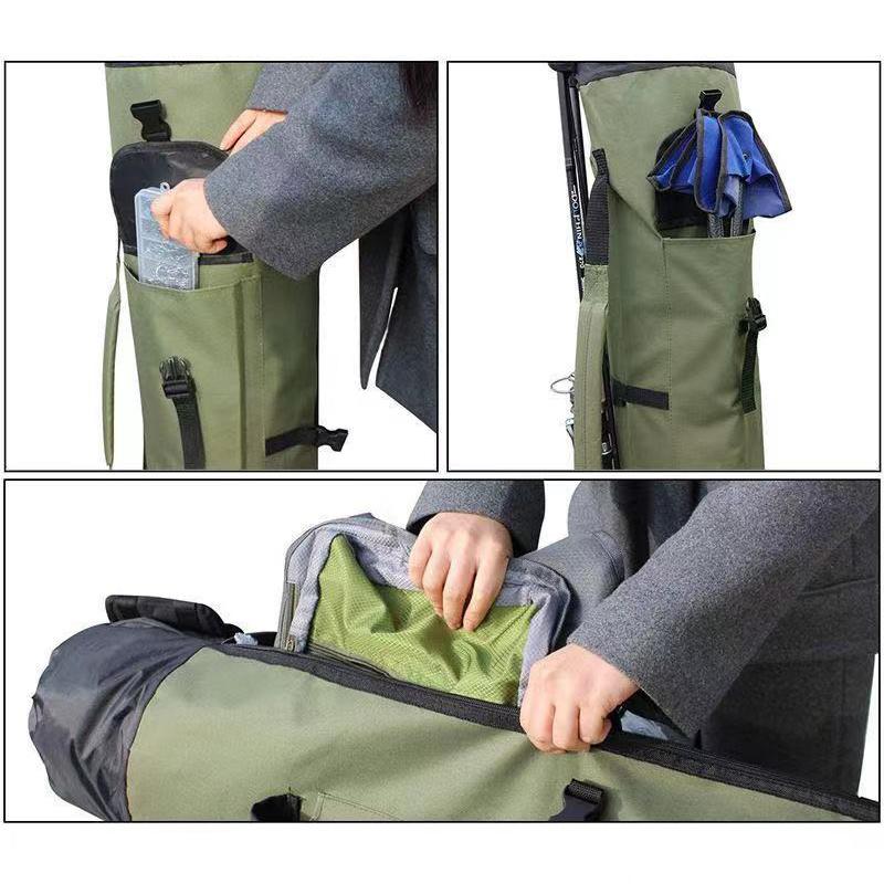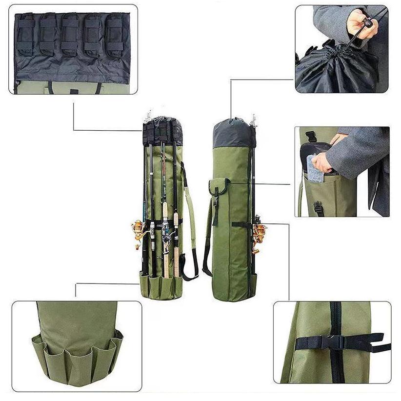 手持ちとしての手提げはもちろん、肩掛け、斜め掛け、背負うことも出来ますので、使用時のご状況に合わせてご使用ください。ショルダーストラップは調節可能なので、お好みの長さにご調節いただくことが可能です。この釣り竿収納バッグには、締め付けが簡単なドロースリング閉鎖があり、タイトなバックルでバッグのサイズを調整し、釣り具を安定させ、損傷されないようにすることができます