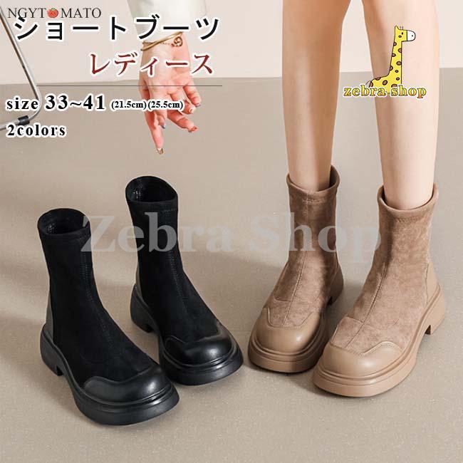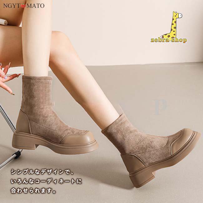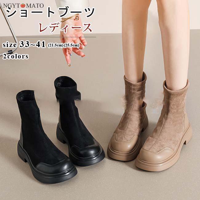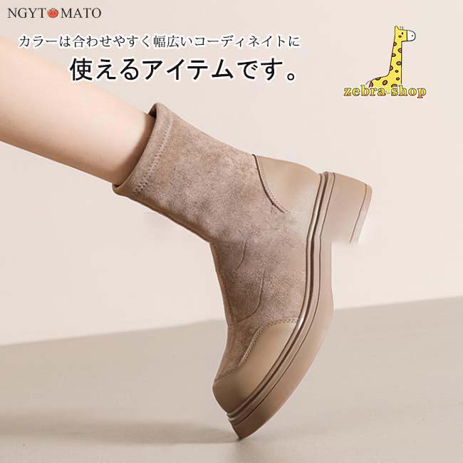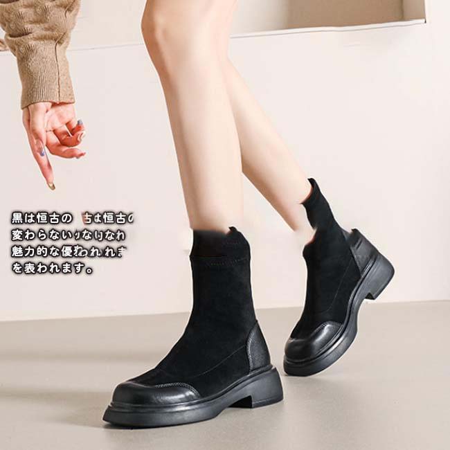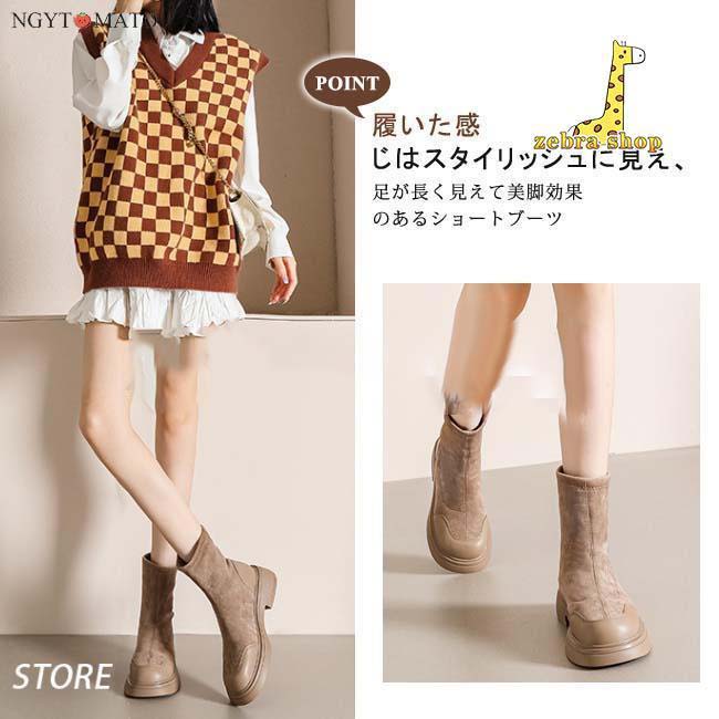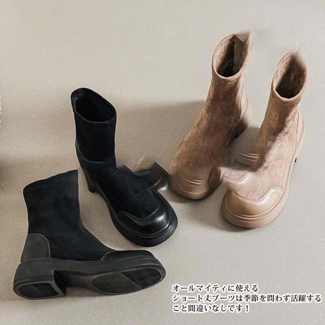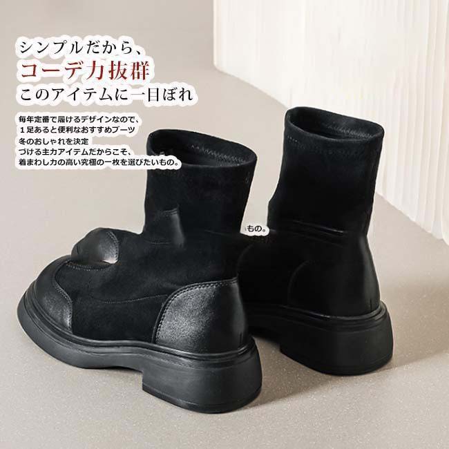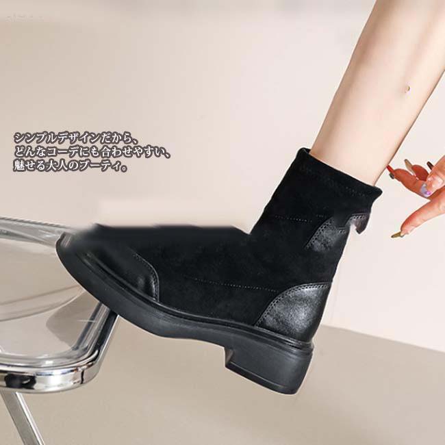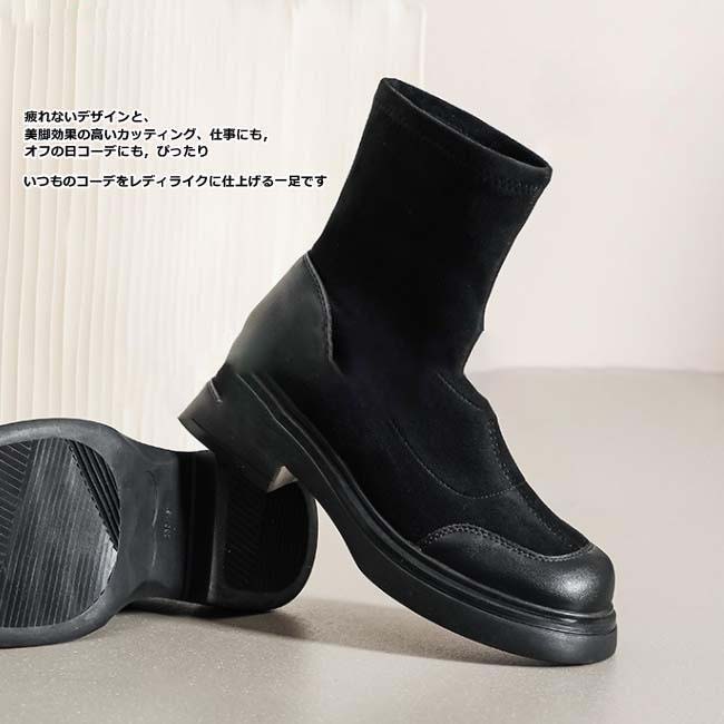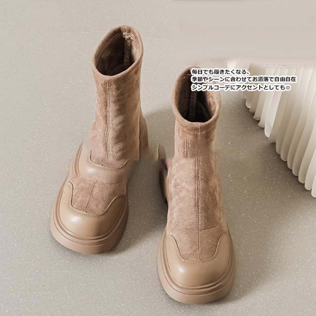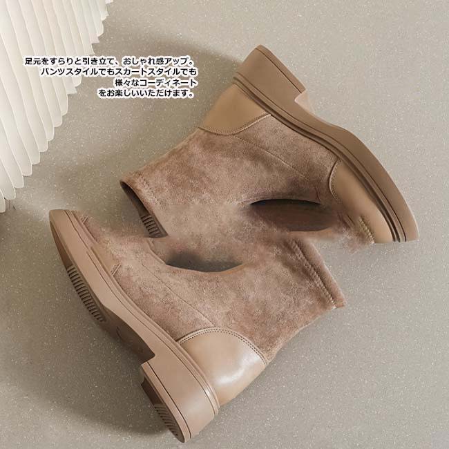 異素材切り替えの配色デザインでこなれた印象のショートブーツ。