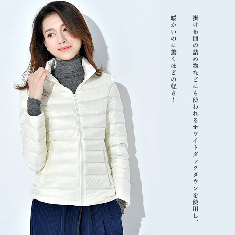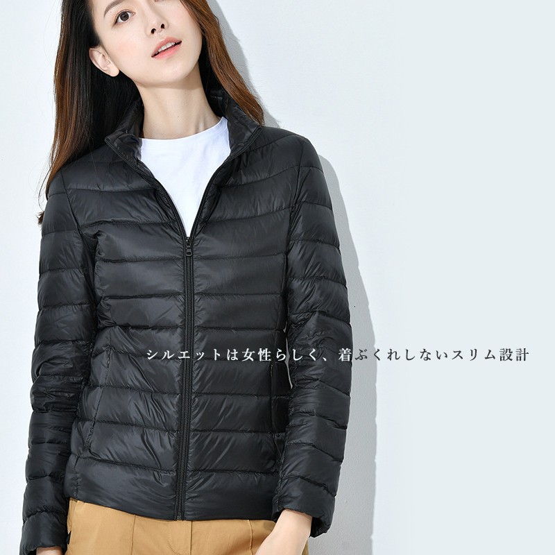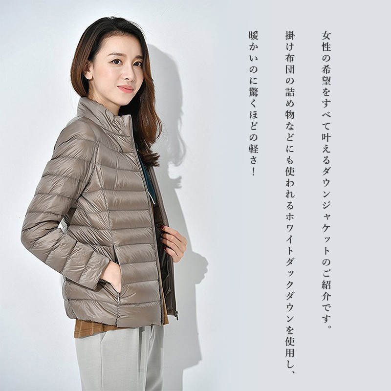 ダウンジャケット 軽い ジャケット ダウンコート 防風 スリム ライト 軽量 秋冬 防寒 スタンドカラー フードなし スリム フィット ファスナー コンパクト レディース アウター ジャンパー インナージャケット 軽アウター 上着 防寒 新作 アウター 通勤 旅行 ビジネス 秋 冬 ホワイトダックダウン ショート丈 大人 コーデ キレイめ カジュアル