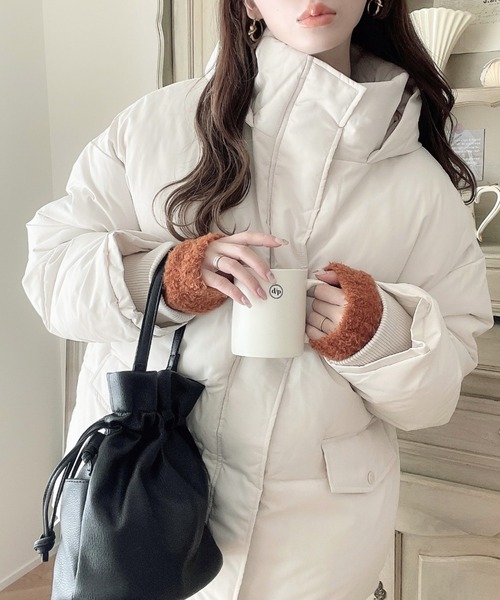 ?裾のドロストリング仕様やリブ袖、裏地は総裏で、しっかり保温してくれるのであたたかさ◎