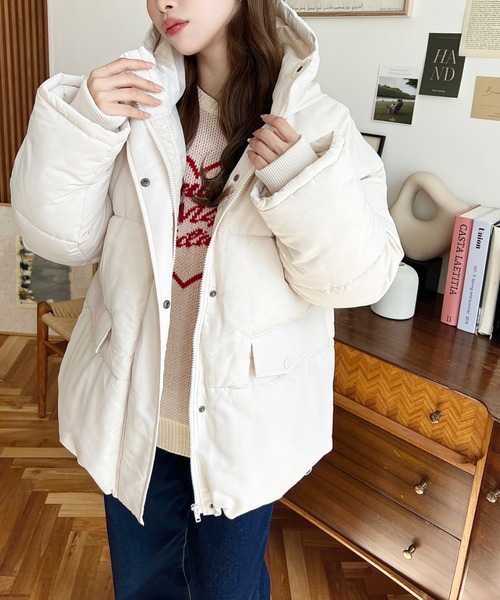 ?中綿には細かい繊維のファイバーダウンをたっぷりと使用しているので、まるでリアルダウンのようにやわらかく、軽くてしっかり暖かい、防寒性の高さが魅力です?
