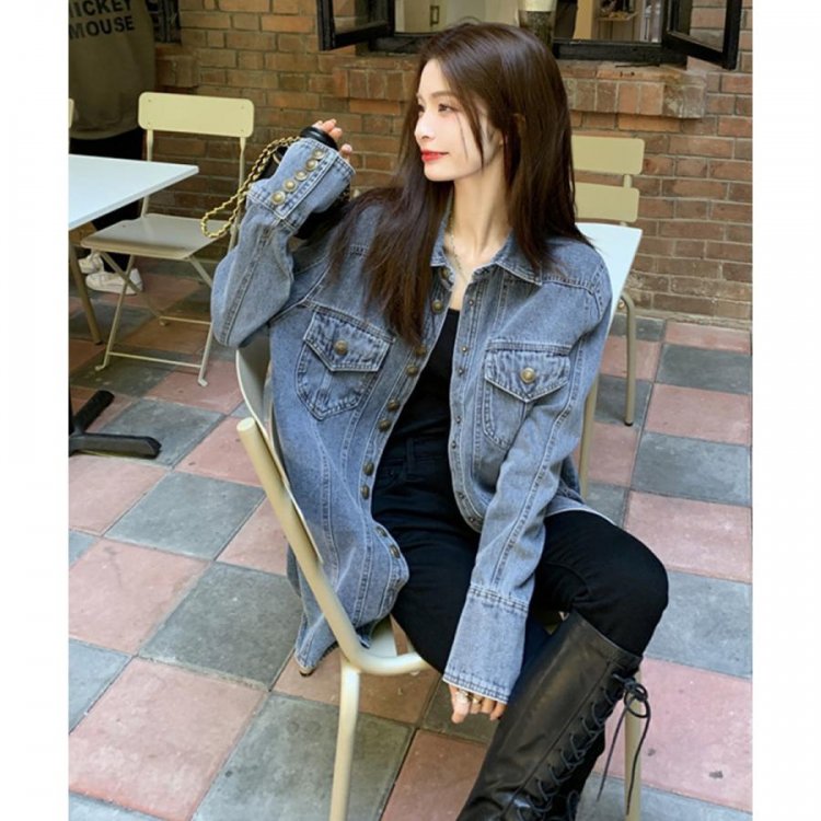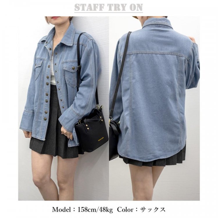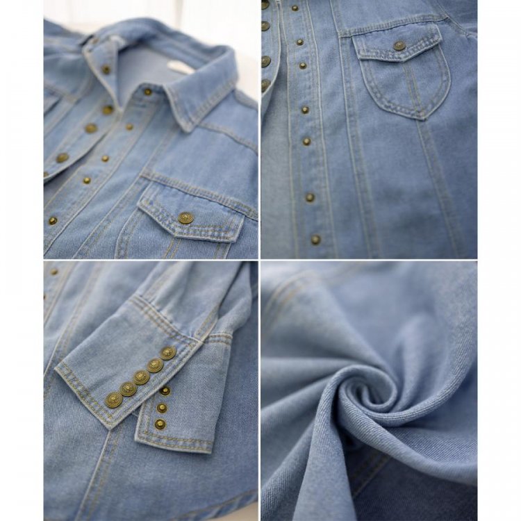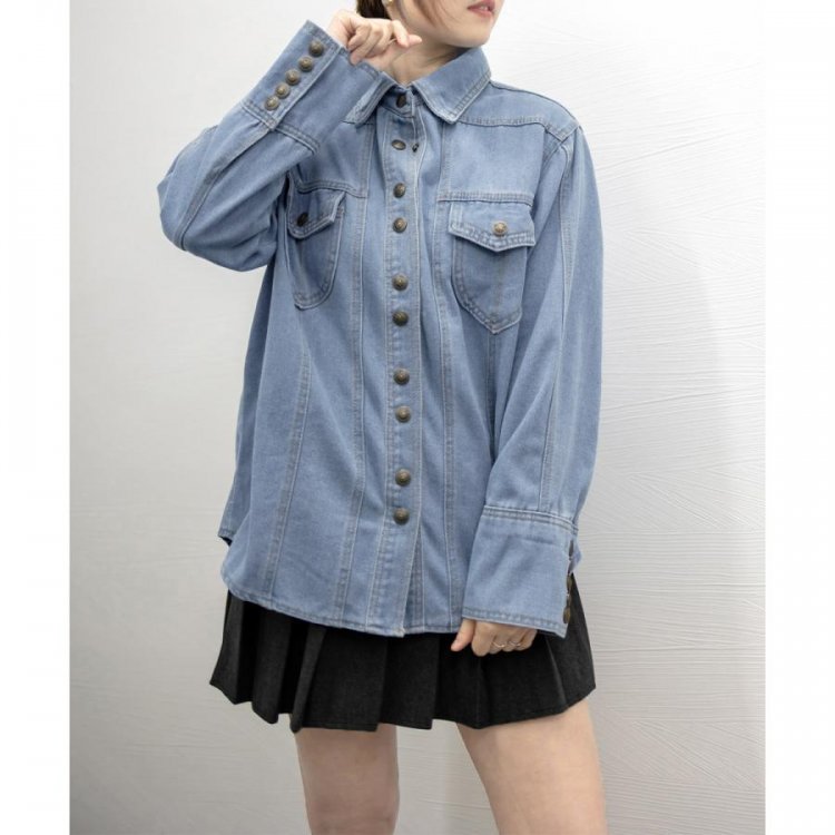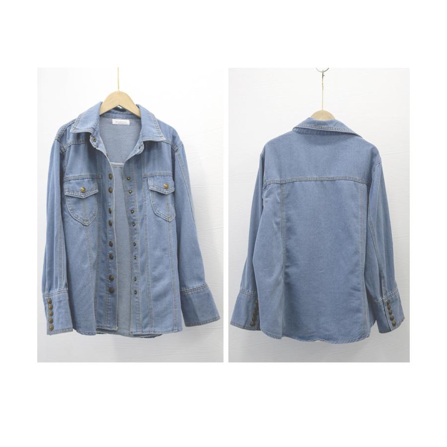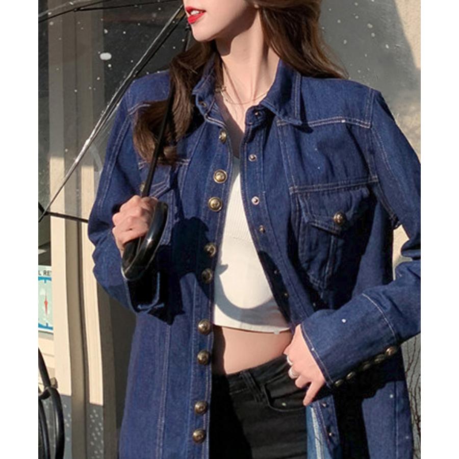 韓国ワークシャツ 長袖デニムブラウス 薄手ジージャン クール デニムアウター 体型カバー ロングシャツ カジュアル羽織り