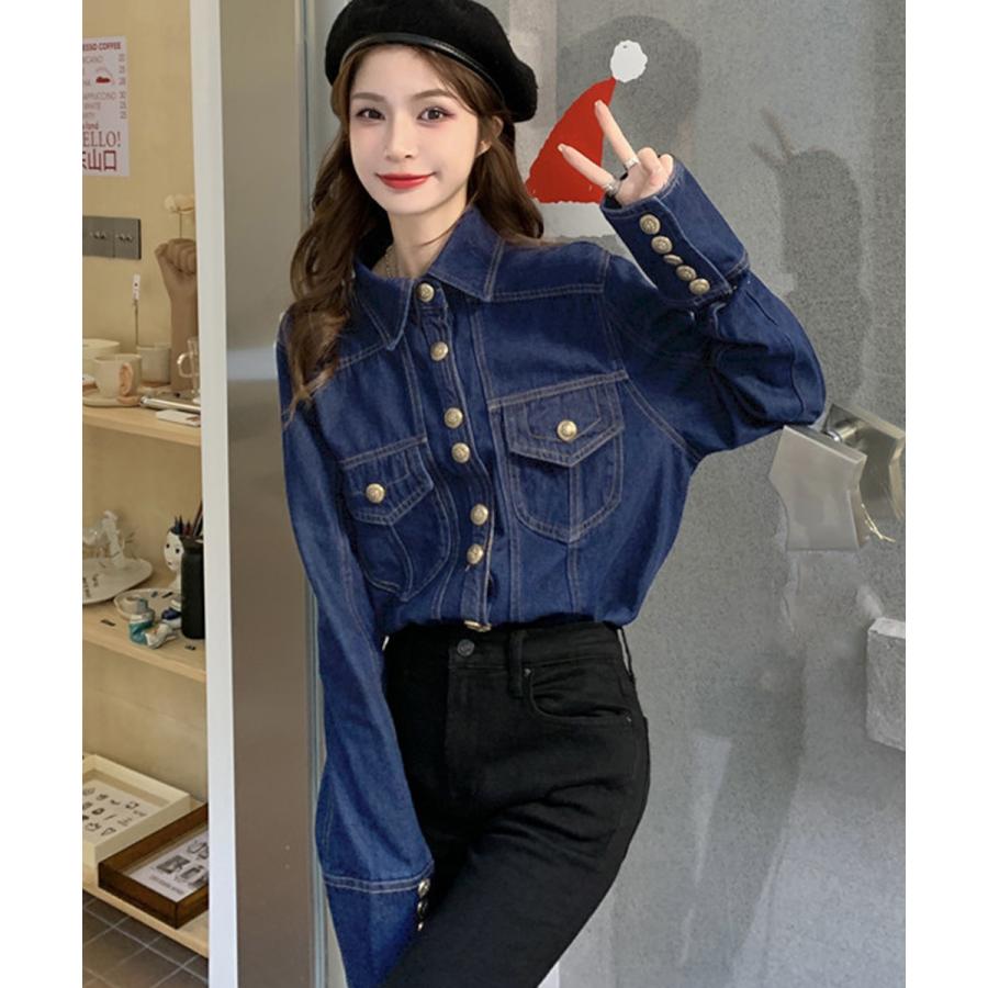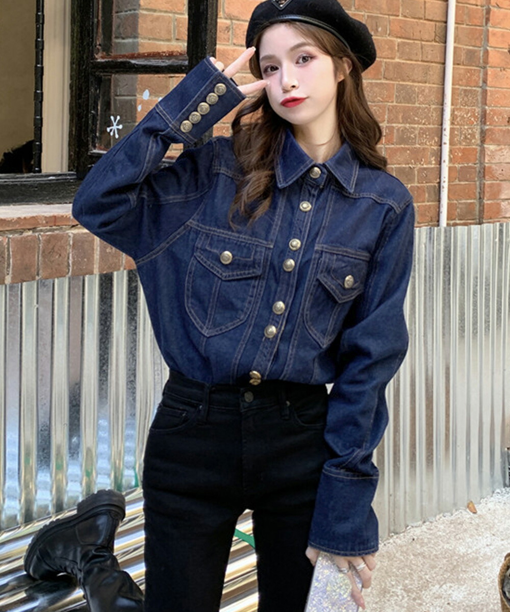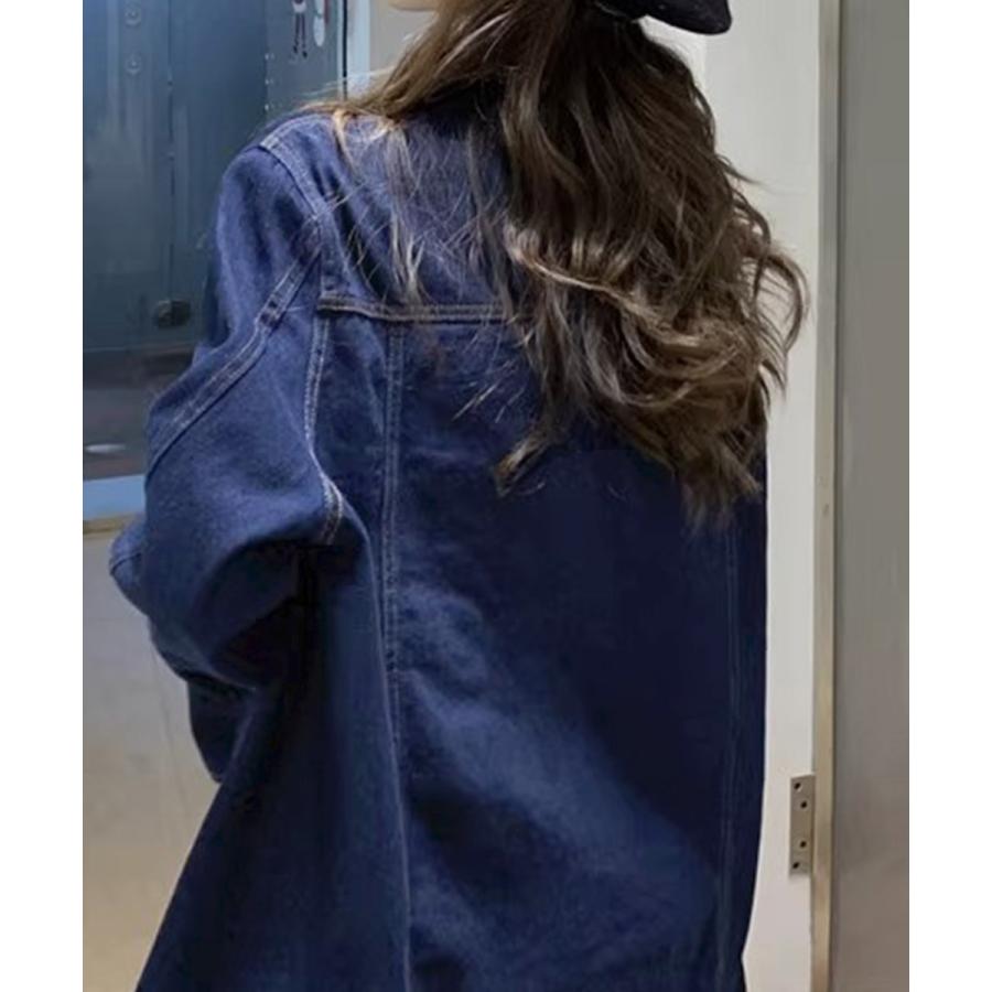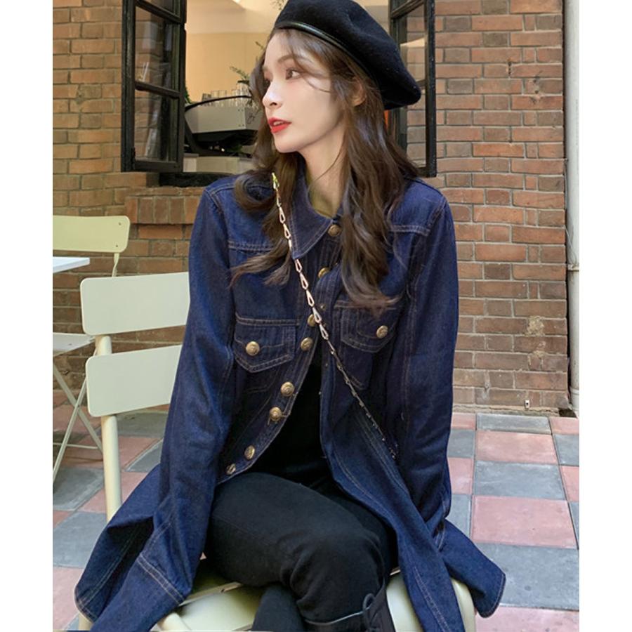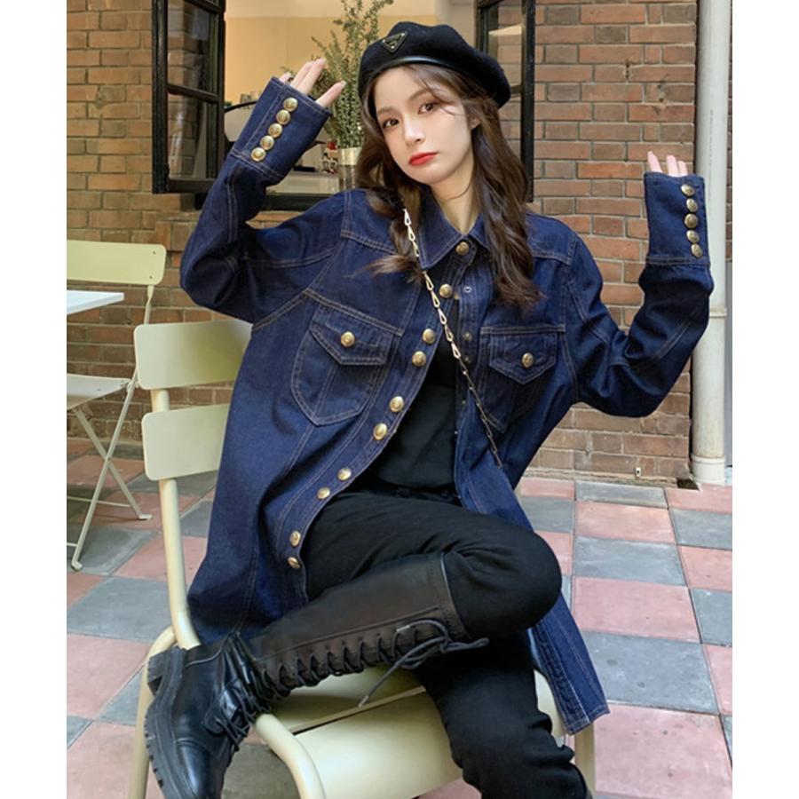 韓国ワークシャツ 長袖デニムブラウス 薄手ジージャン クール デニムアウター 体型カバー ロングシャツ カジュアル羽織り