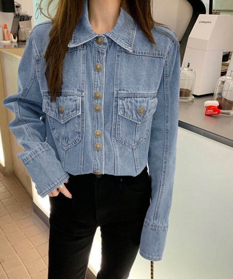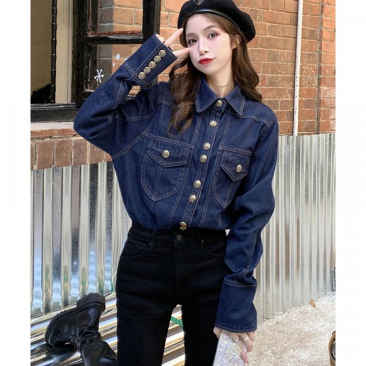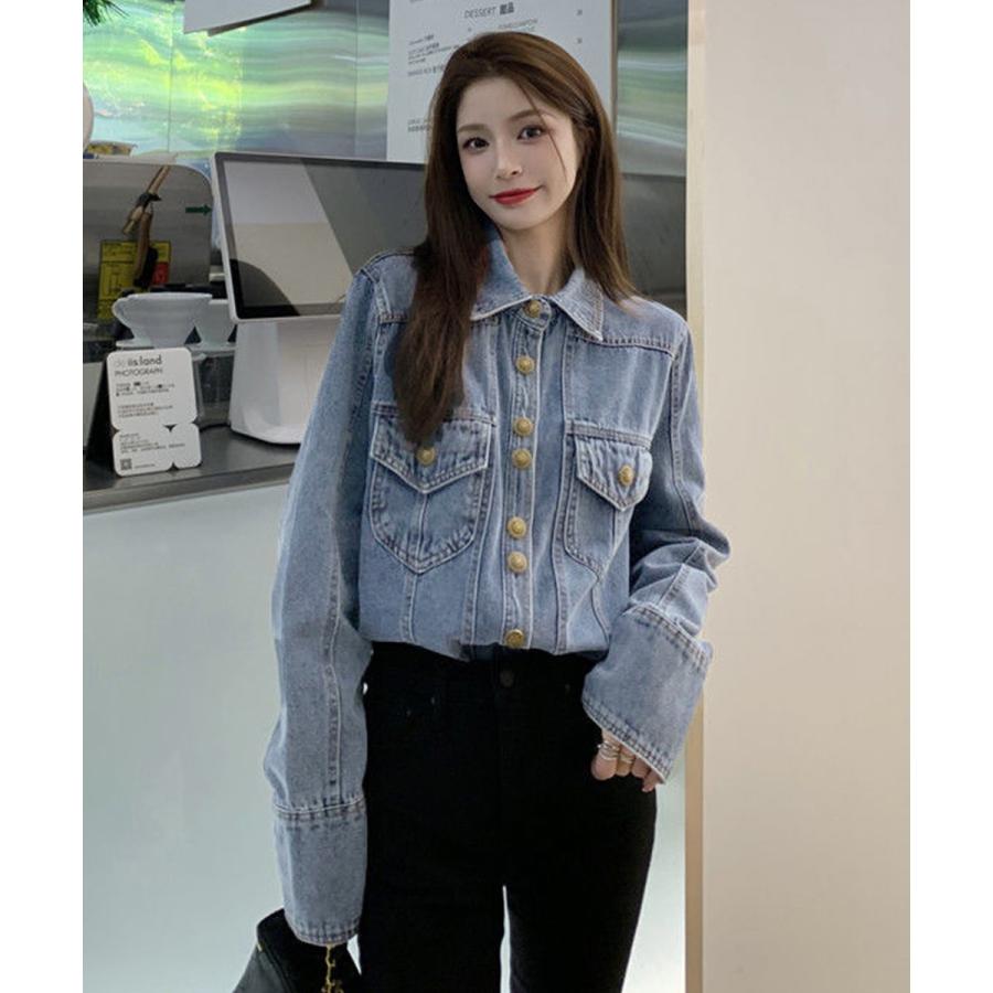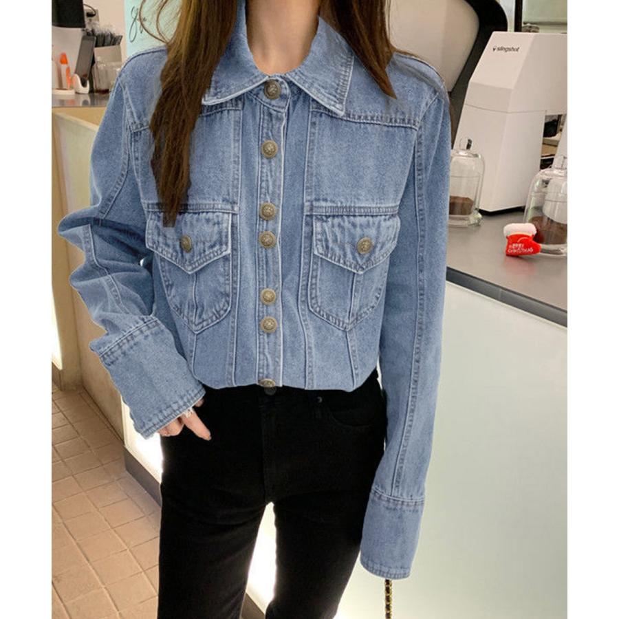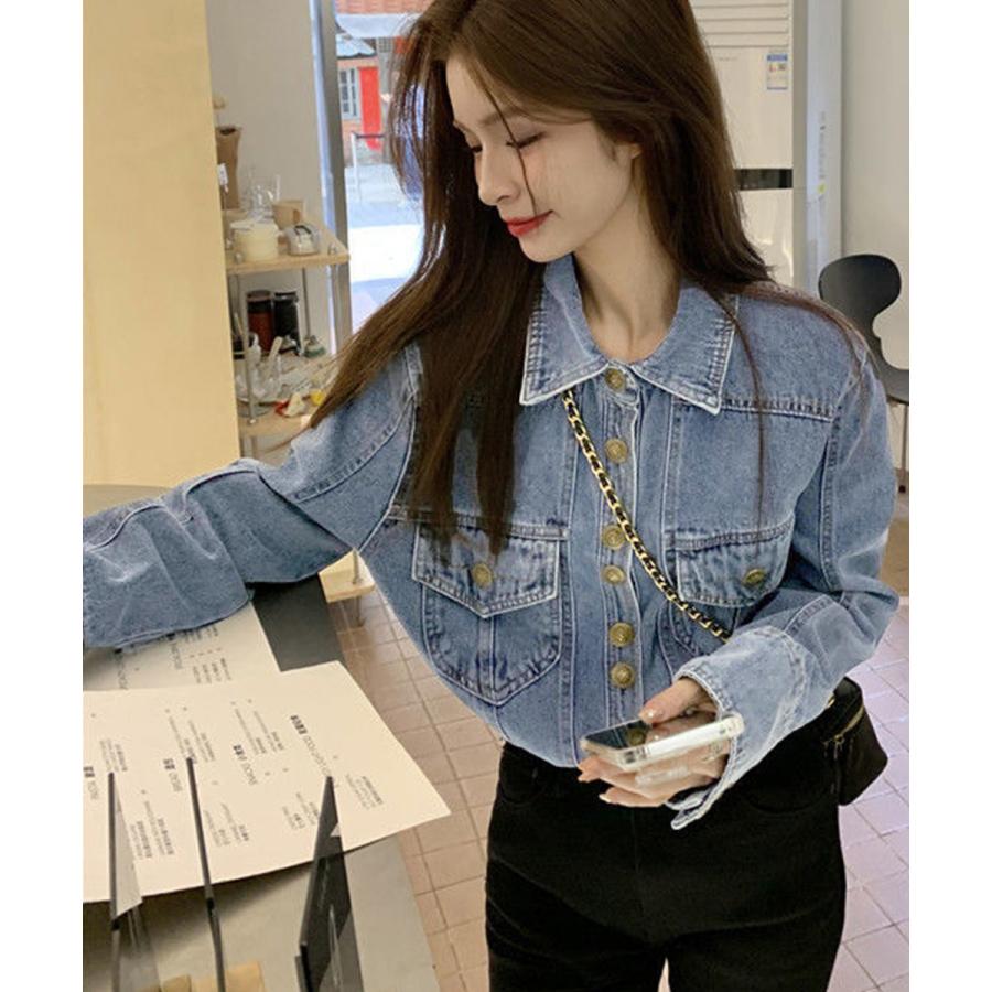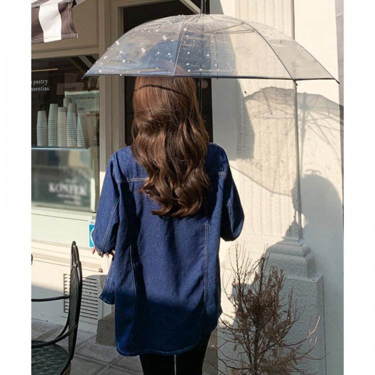韓国ワークシャツ 長袖デニムブラウス 薄手ジージャン クール デニムアウター 体型カバー ロングシャツ カジュアル羽織り