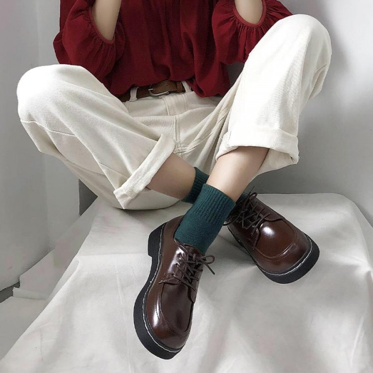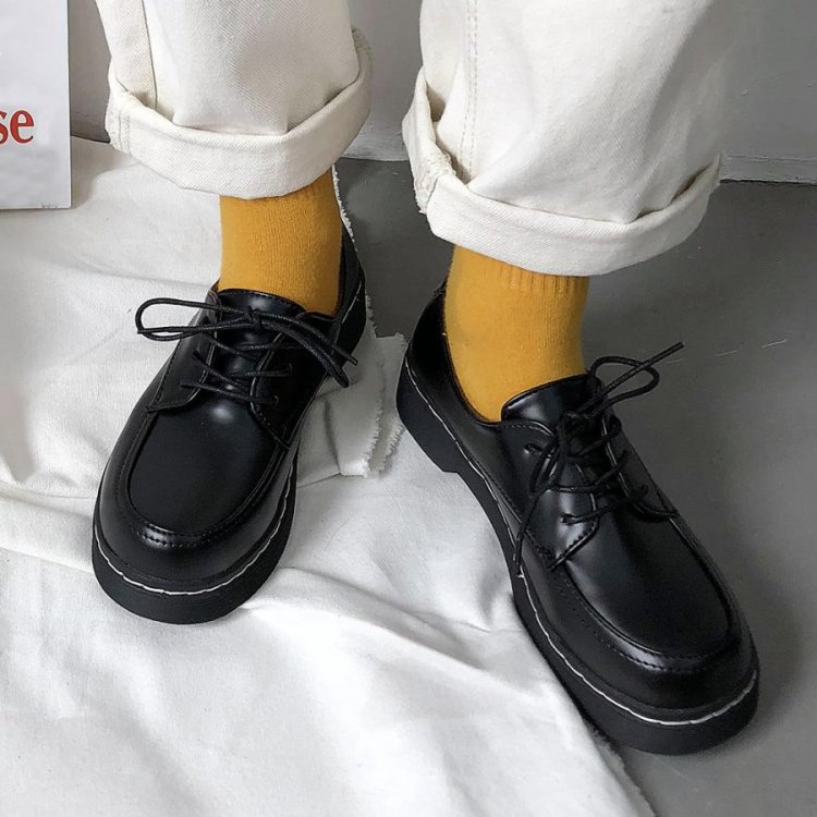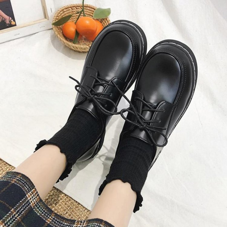 ドレスシューズ レディース 靴 シューズ レースアップ レザー調 厚底 シンプル 歩きやすい