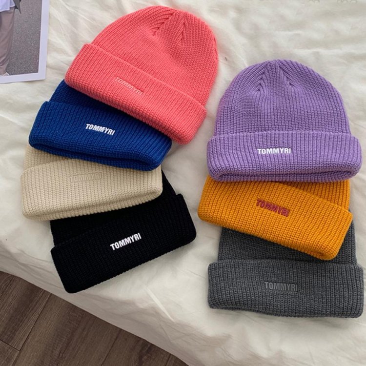 韓国ファッション 厚手 レトロ リブ カラーニット 帽子 シンプル カジュアル おしゃれ 可愛い ナチュラル 人気