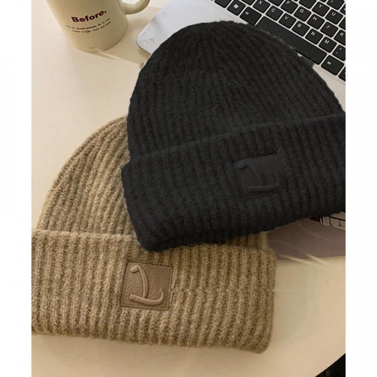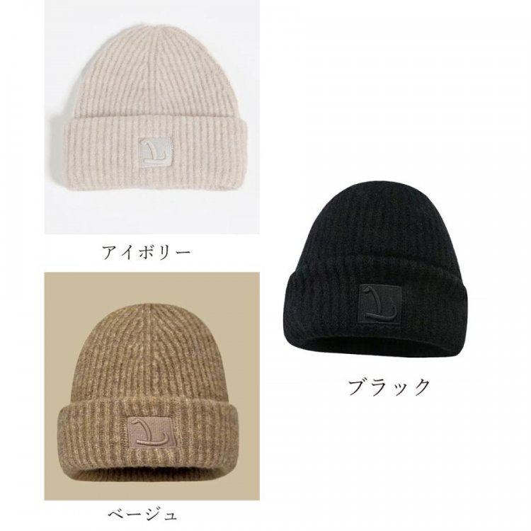 折り返し ロゴ付き ニットぼうし 暖かい 防寒帽子 カジュアル シンプル おしゃれ 可愛い 通学 人気 お出掛け 小物冬
