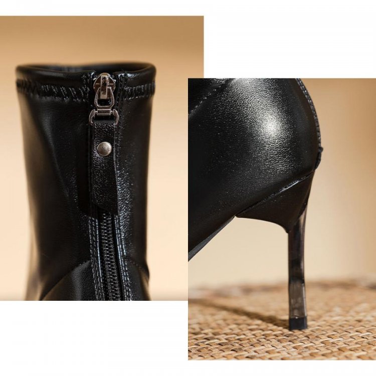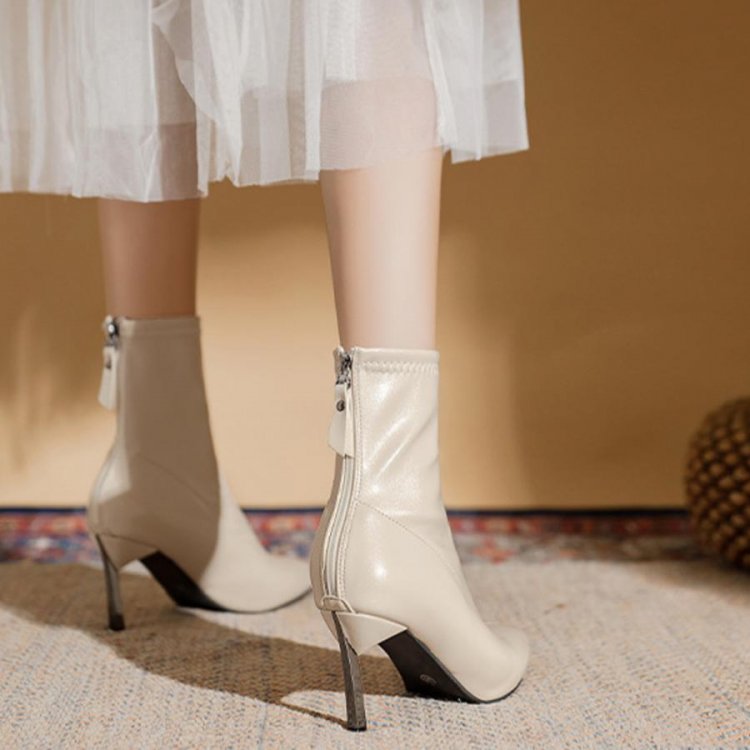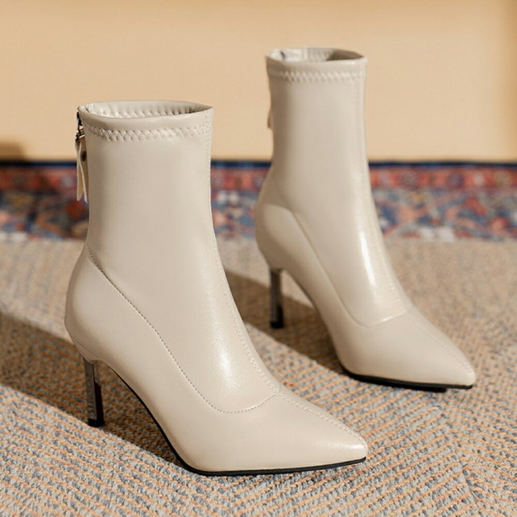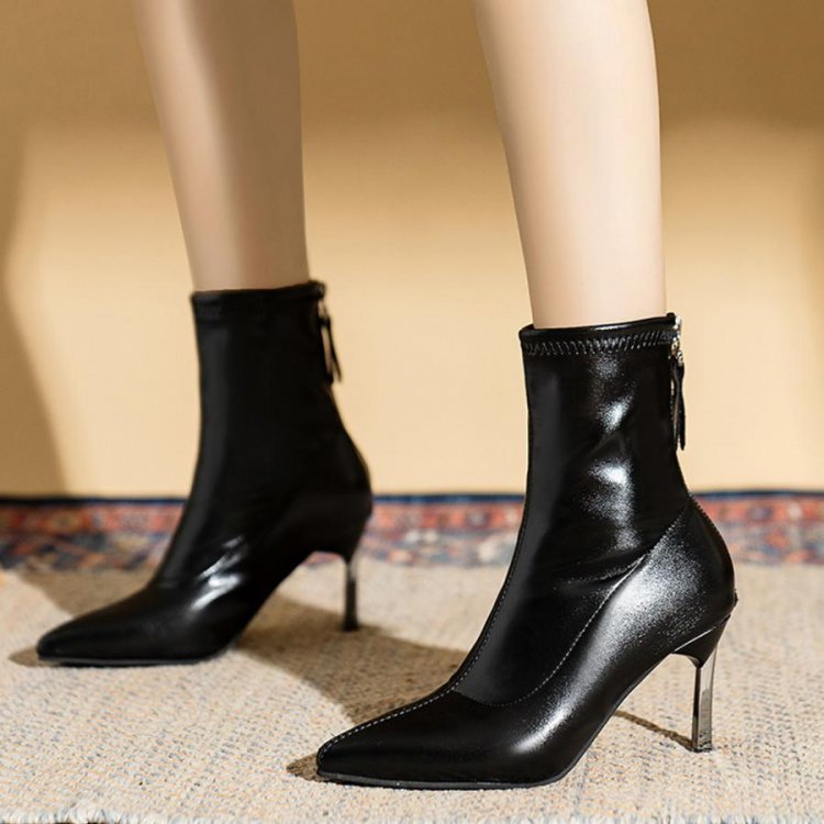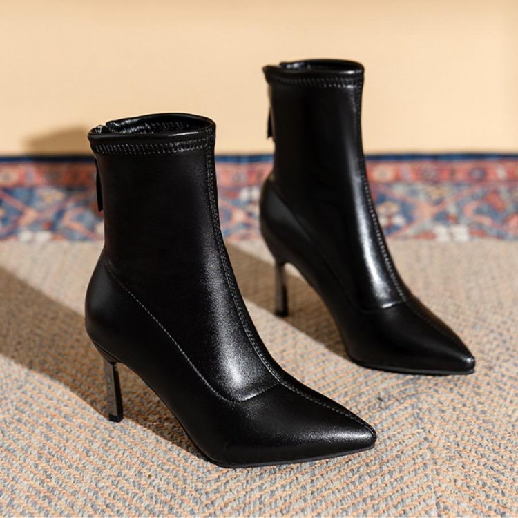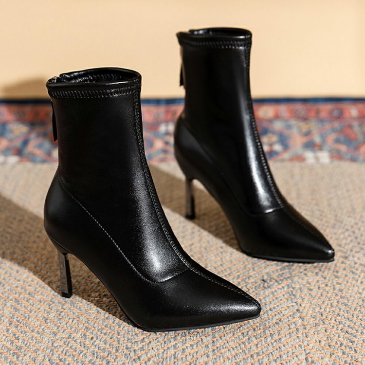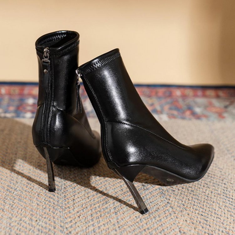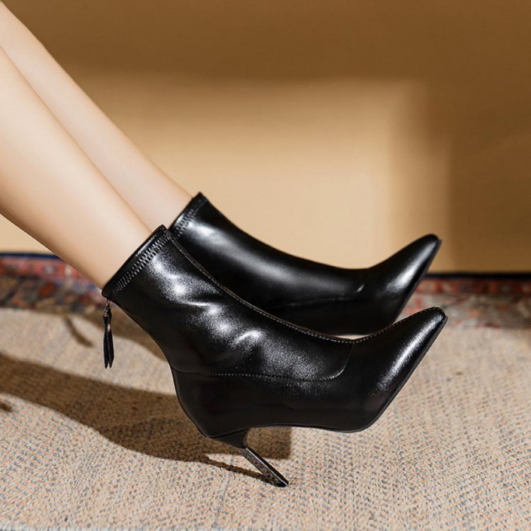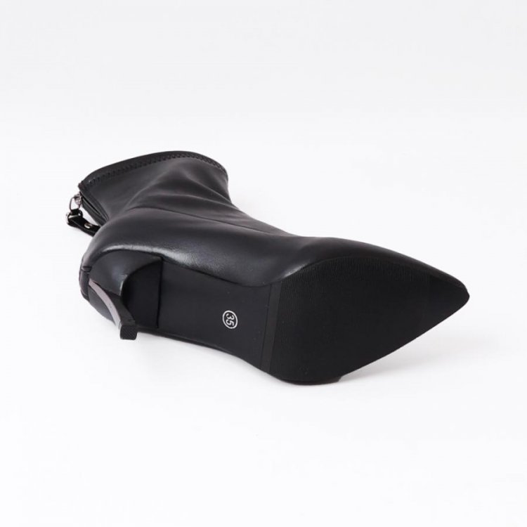 ポインテッドトゥ×ピンヒールでスタイルアップが期待できるショートブーツ