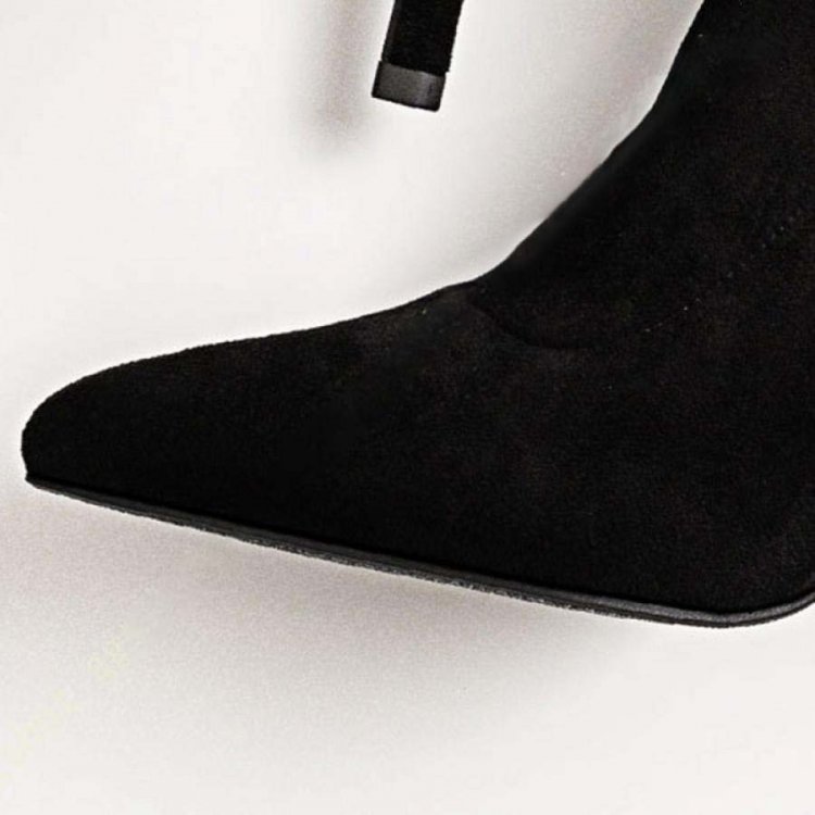 スラッと足が細く見える華奢なピンヒールのショートブーツ。