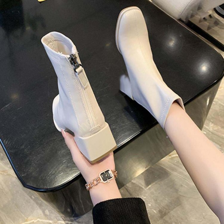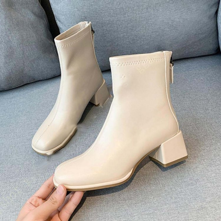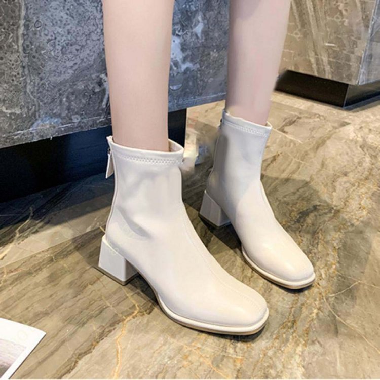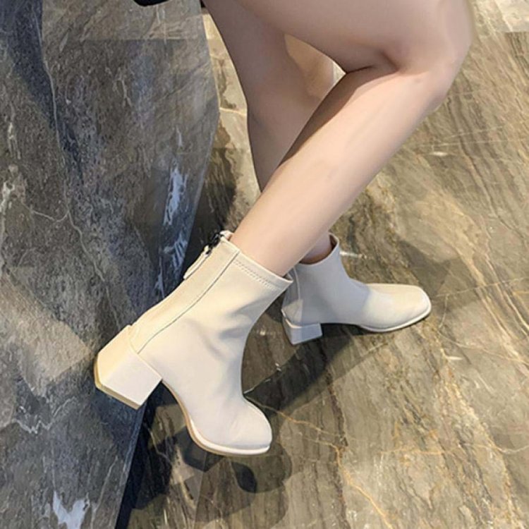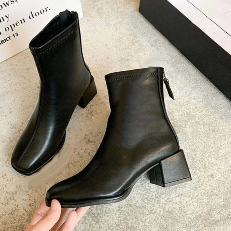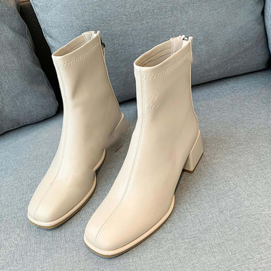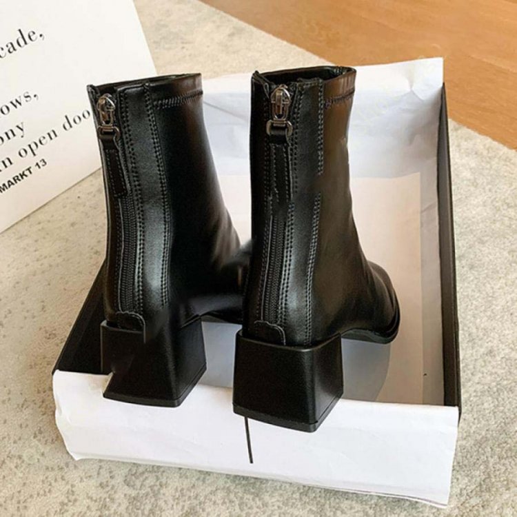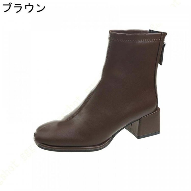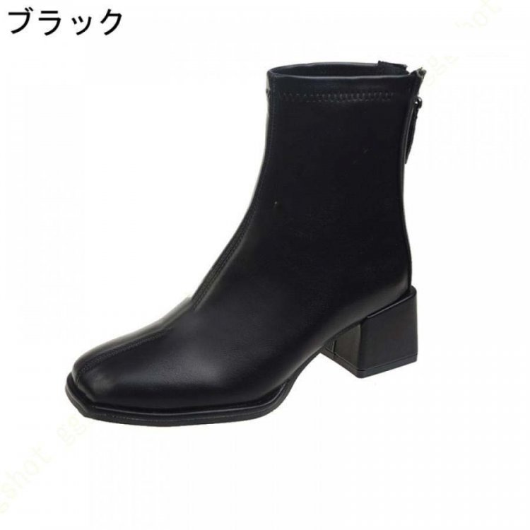 - ショートブーツ 太ヒールブーティ 美脚靴