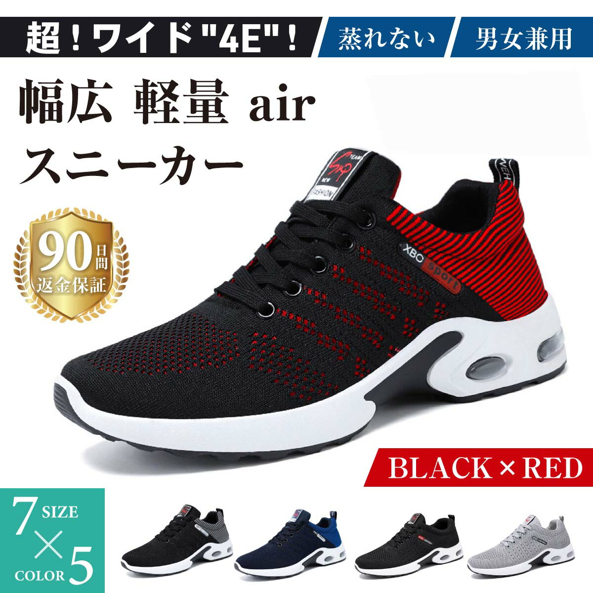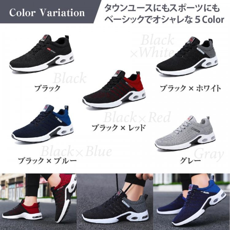 ?「軽量設計+かかとにはair内蔵で長時間履いていても疲れにくい!凹凸ソールで地面をしっかりキャッチ!滑らない!」充実の機能性だけでなく、通学、通勤、タウンユース、スポーツ、ジム、ウォーキングなど、どんなシーンもスタイリッシュに。