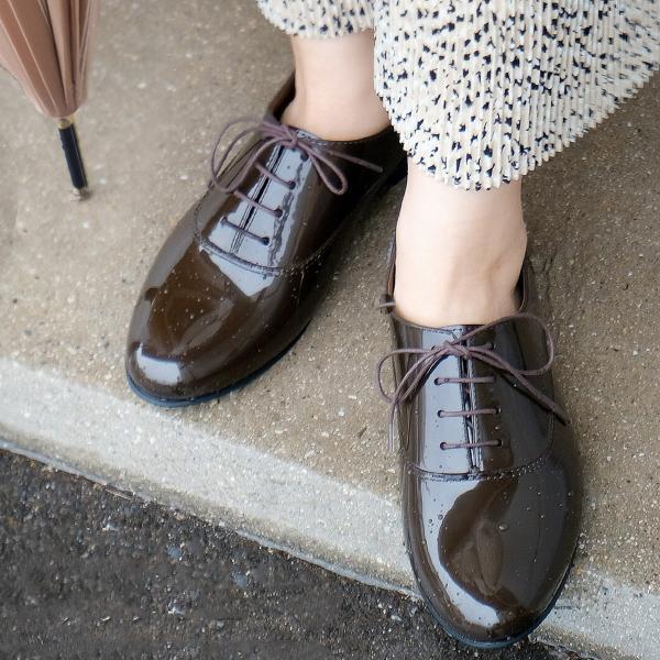 【キーワード】雨 雨晴れ兼用 防水 柔らか 痛くない ローヒール 歩きやすい トラッド アーモンドトゥ PVC 23 23.5 24 24.5 25 合成皮革 レースアップ 紐 晴れ兼用 おじ靴 カジュアル 梅 茶色 マニッシュ 20代 30代 40代 50代 ルリアンプラス アミアミ