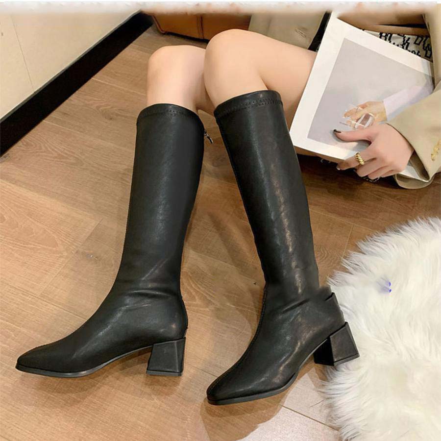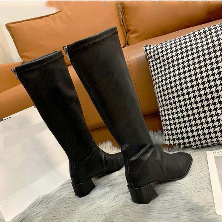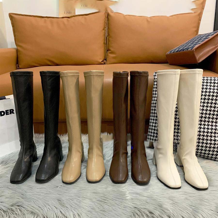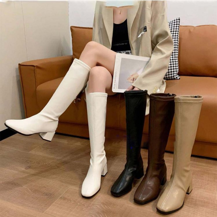 やわらかなストレッチ素材で窮屈感なく履きやすいロングブーツ。
