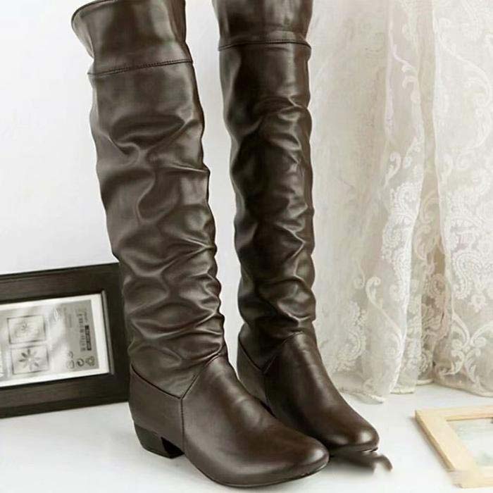 1足あると重宝する、シンプルなデザインのロングブーツ。