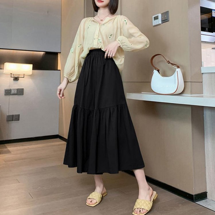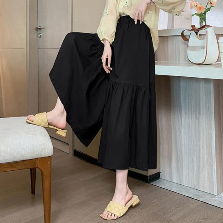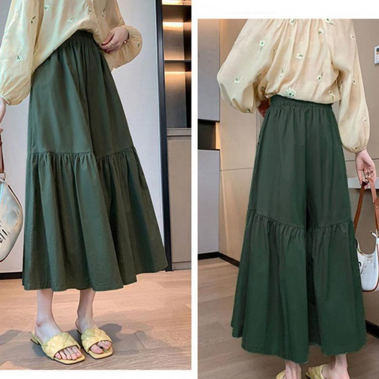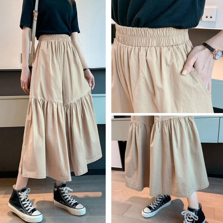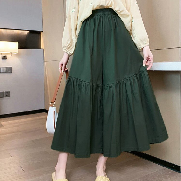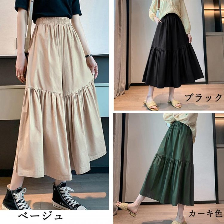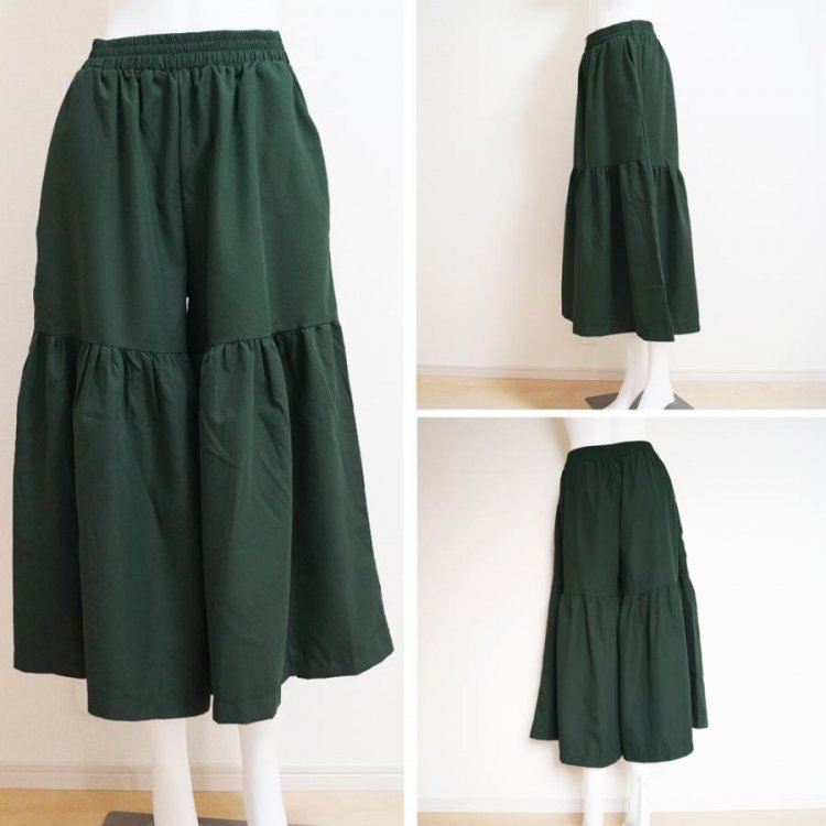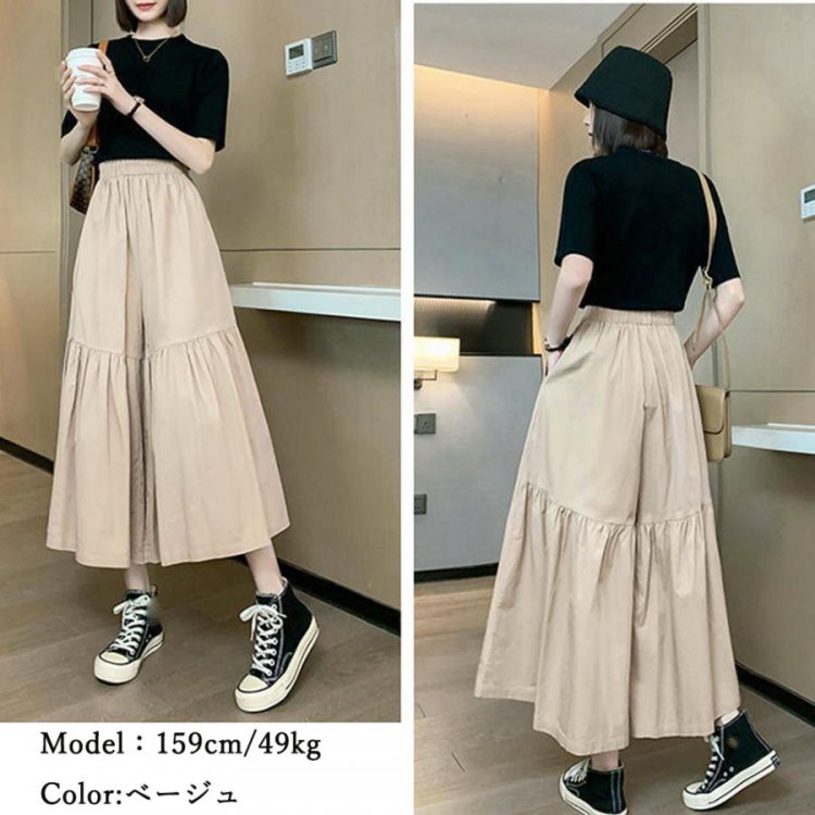 レディース ワイドフレアパンツ 体型カバー 着回し ガウチョパンツ サイドポケット付き ボトムス 春夏秋 ハイウエスト