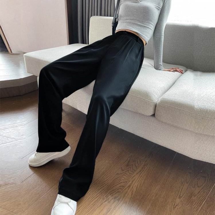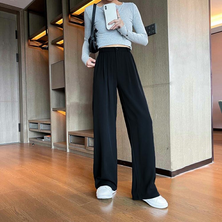 ハイウエスト ストレートパンツ おしゃれ 美脚 セミワイドパンツ 脚長パンツ 春秋夏 カジュアル ロングパンツ 着やせ