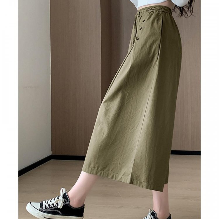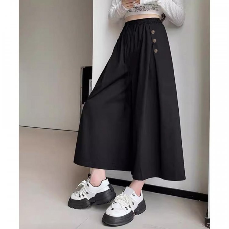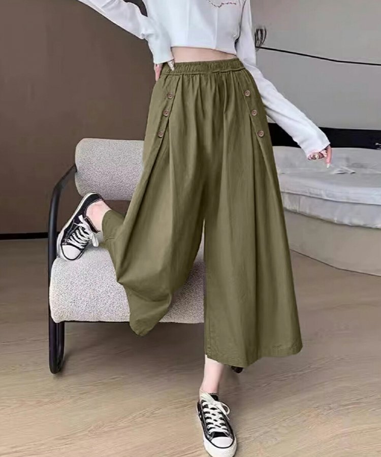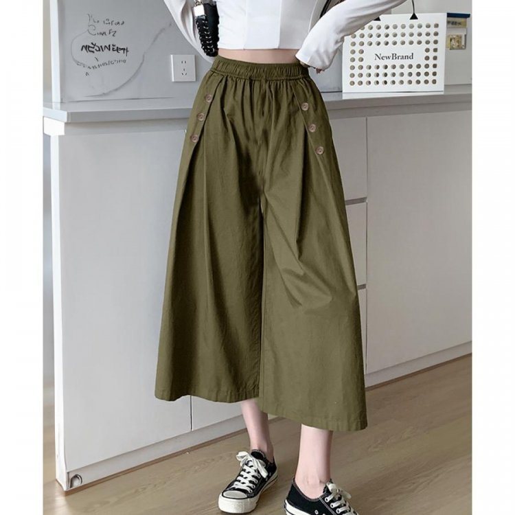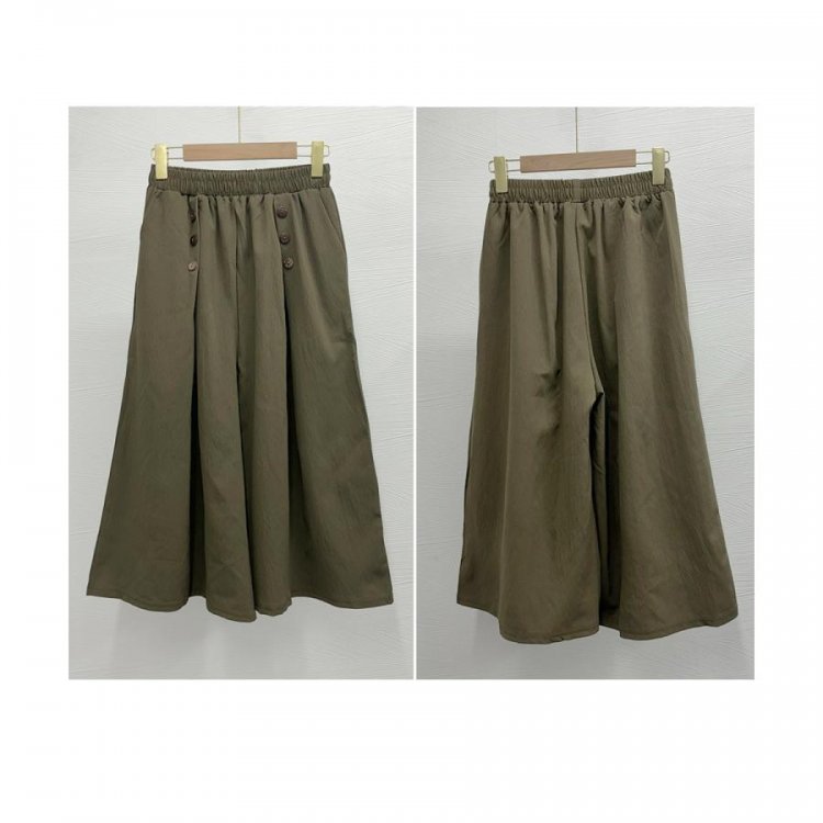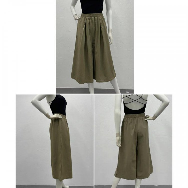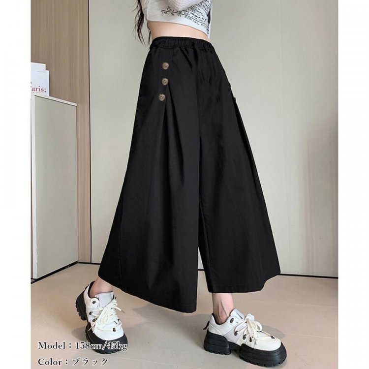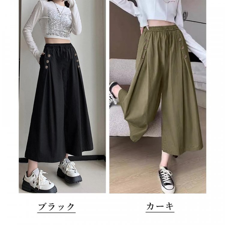 レディース ウエストゴム スカーチョ サイド飾りボタン付き スカンツ ゆったり ボトムス カジュアル ワイドガウチョ