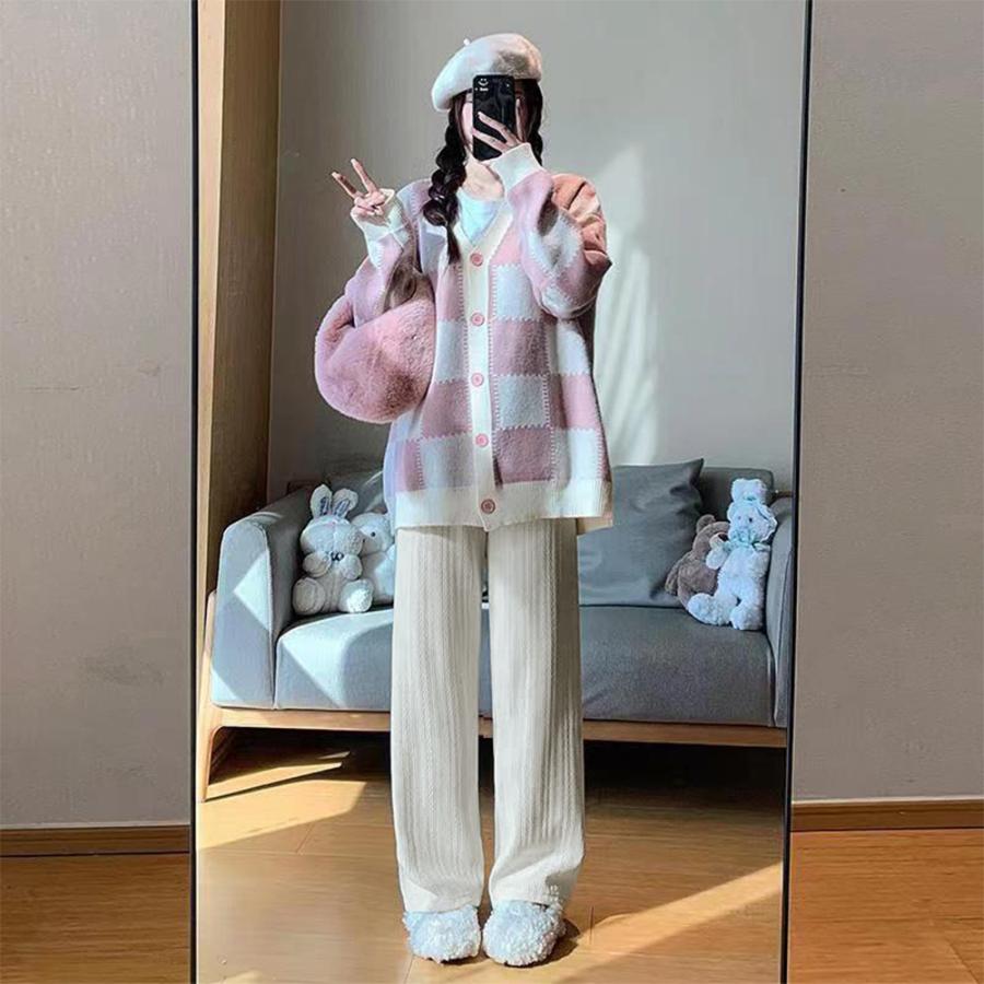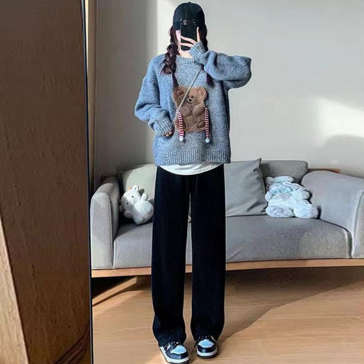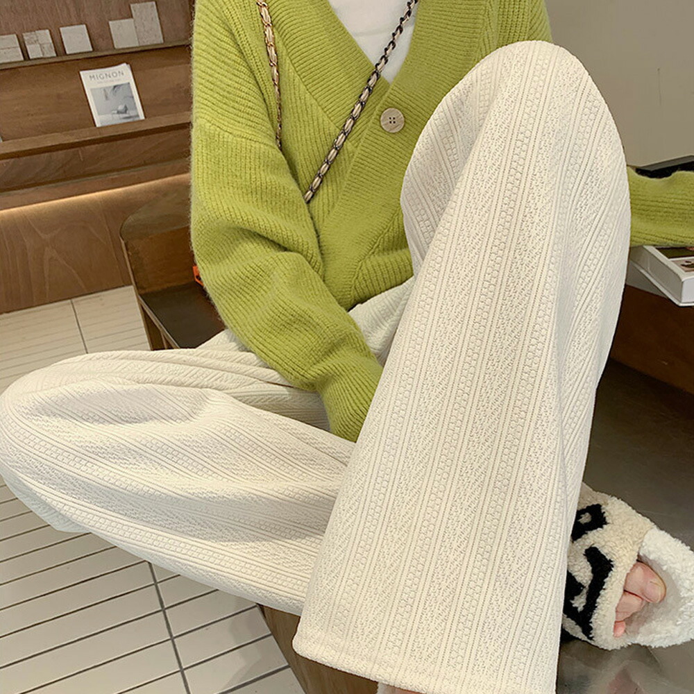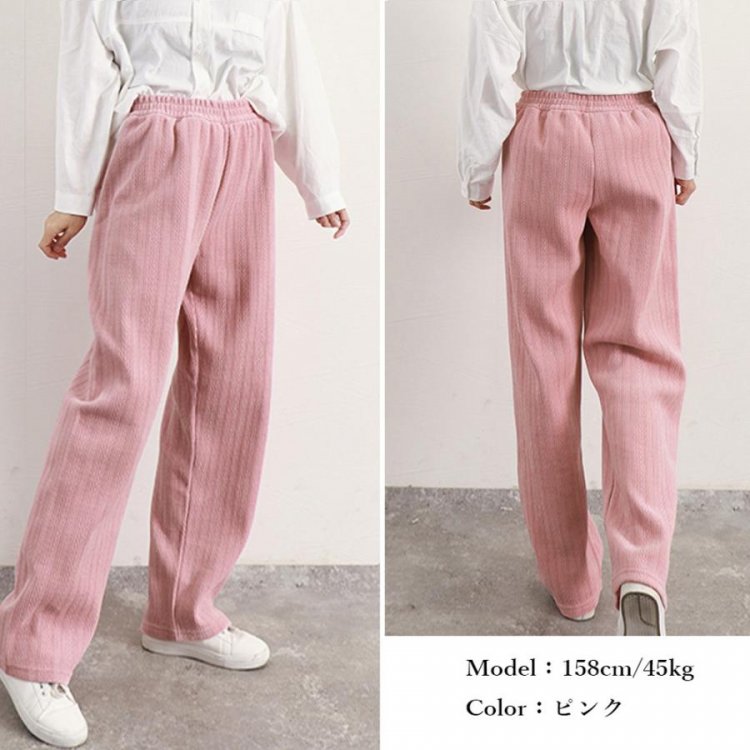 コーデュロイ風パンツ ハイウエスト 脚長美脚パンツ ゆったりイージーパンツ カジュアル リラックスストレートパンツ 無地