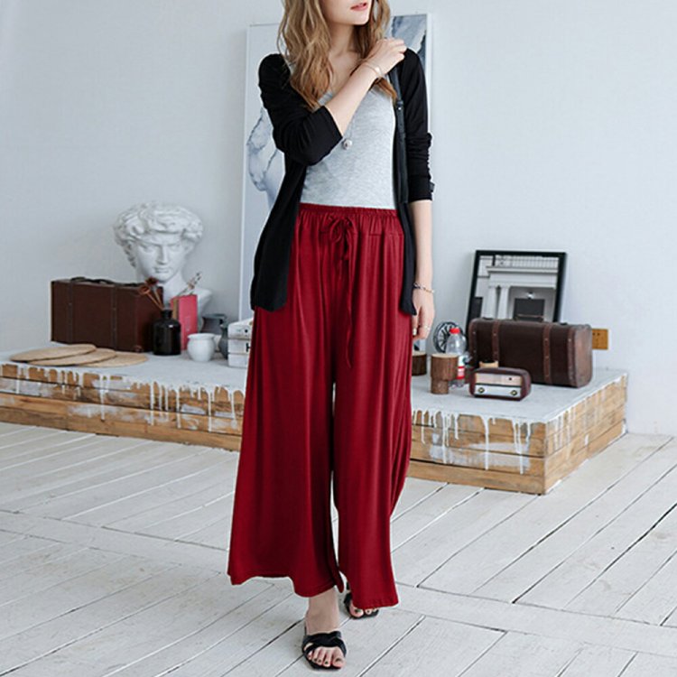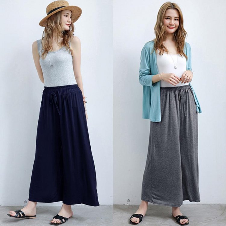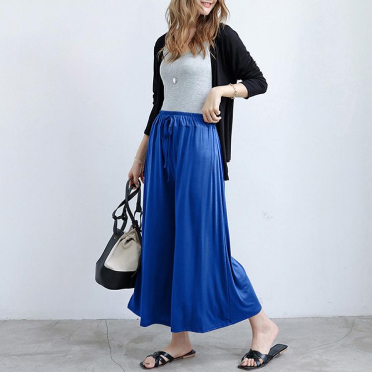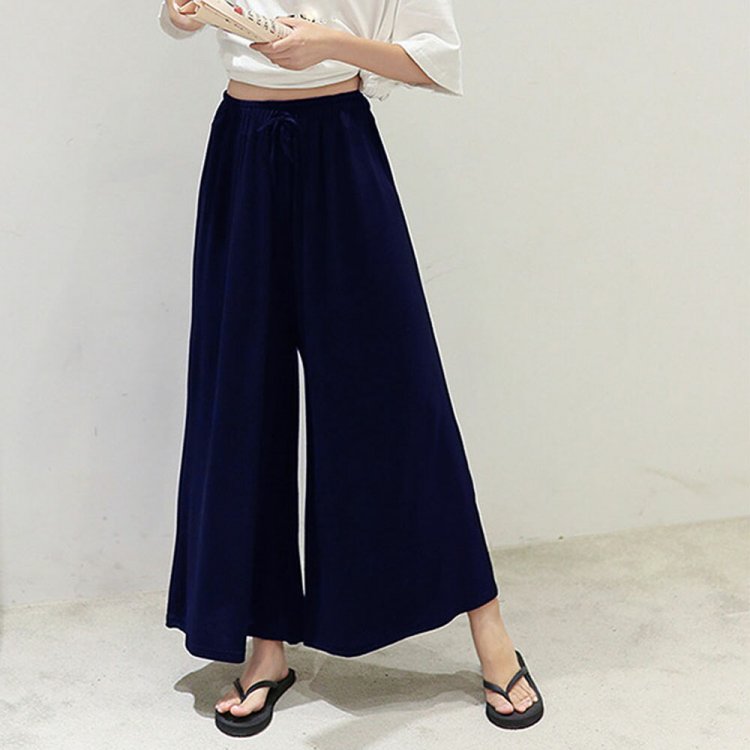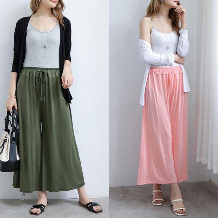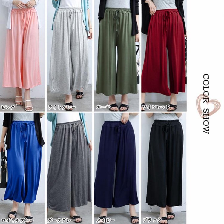 スカーチョ ハイウエスト ゆったりパンツ ウエストゴム 軽やかなフレアパンツ 春夏 スカンツ 体型カバー 美脚 無地薄手