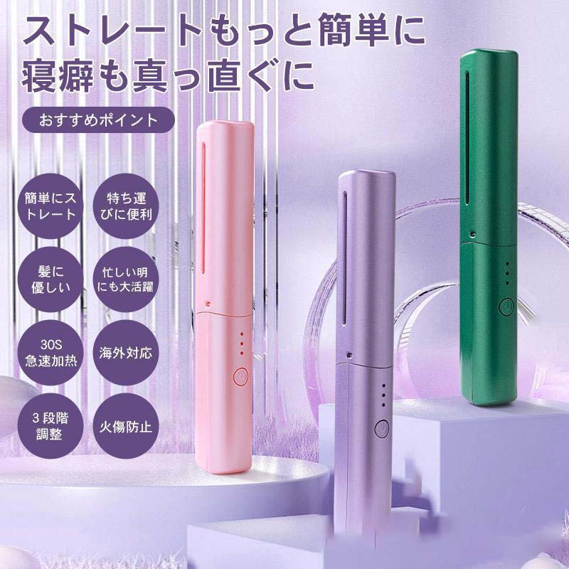 コードレス ヘアアイロン ミニ 急速加熱 カール ストレート 2way ストレートアイロン USB充電式 軽量 ヘアーアイロン カールアイロン 携帯用 コンパクト