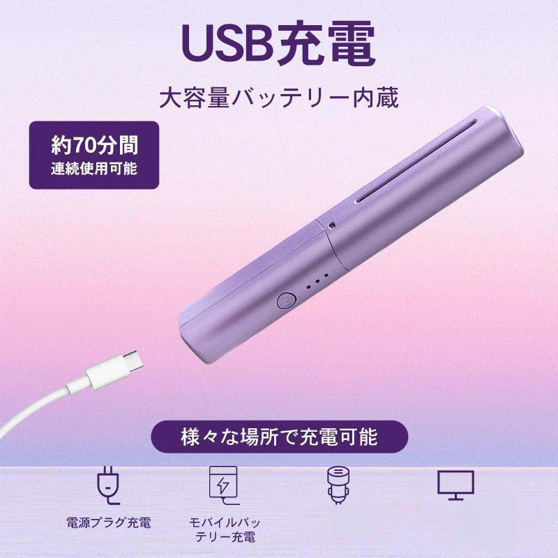 • コードレス ヘアアイロン ミニ 急速加熱 カール ストレート 2way ストレートアイロン USB充電式 軽量 ヘアーアイロン カールアイロン 携帯用 コンパクト