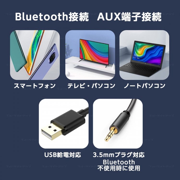【AUX有線接続】付属の3.5mmオーディオケーブルで、コンピューター、スマホ、MP3プレーヤーのAUXポートに接続できます。