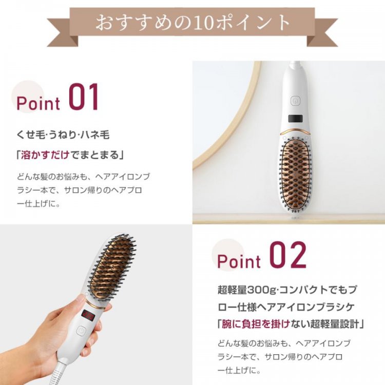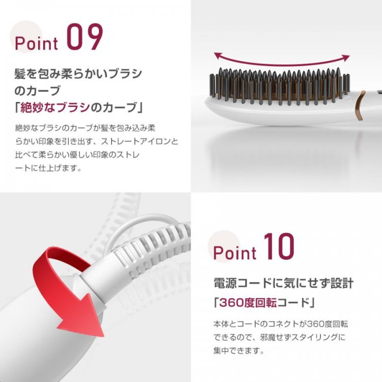 【ヘアアイロンとブラシ一体化】ヘアアイロンブラシは、ヘアアイロンとブラシを一体化に設計され、スタイリングにかかる時間を半減し、手間も半分に減らします。