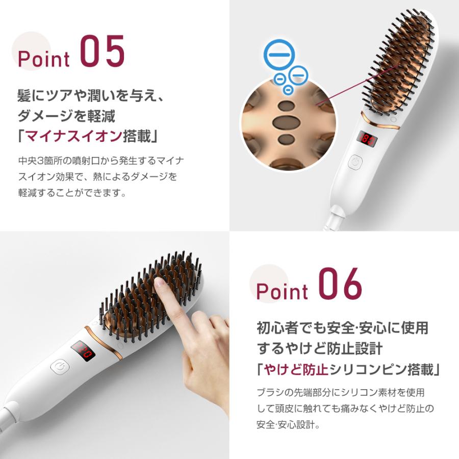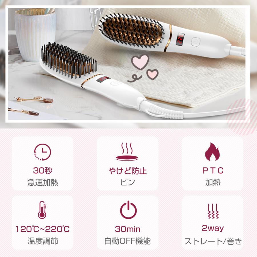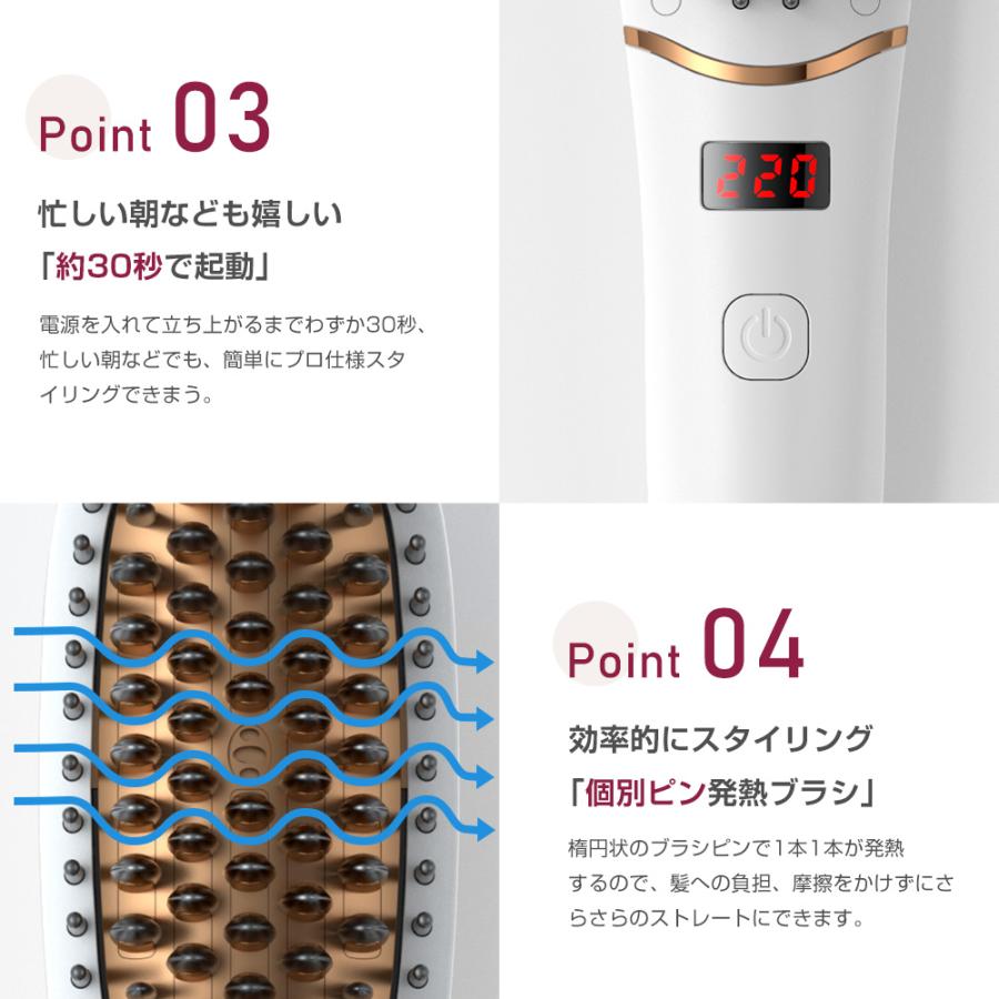【30分で自動オフ】耐熱保護プレートによる発熱、ヘアアイロンブラシは火傷防止シェルの設計を採用しているため、やけどをしたり、熱くてびっくりするような心配なく、髪を真っ直ぐにケアすることができます。また、30分自動スリープ機能を搭載し、常にお客様の安全を守ります。