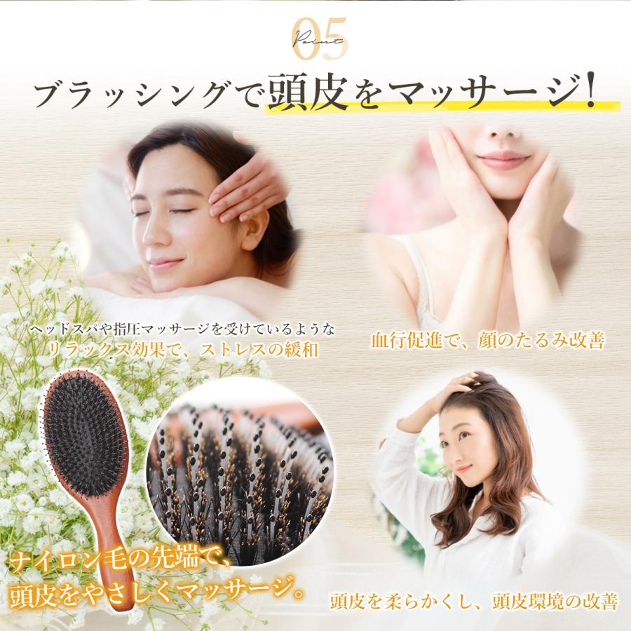ナイロン毛を用いて、頭皮のマッサージ効果を付与。