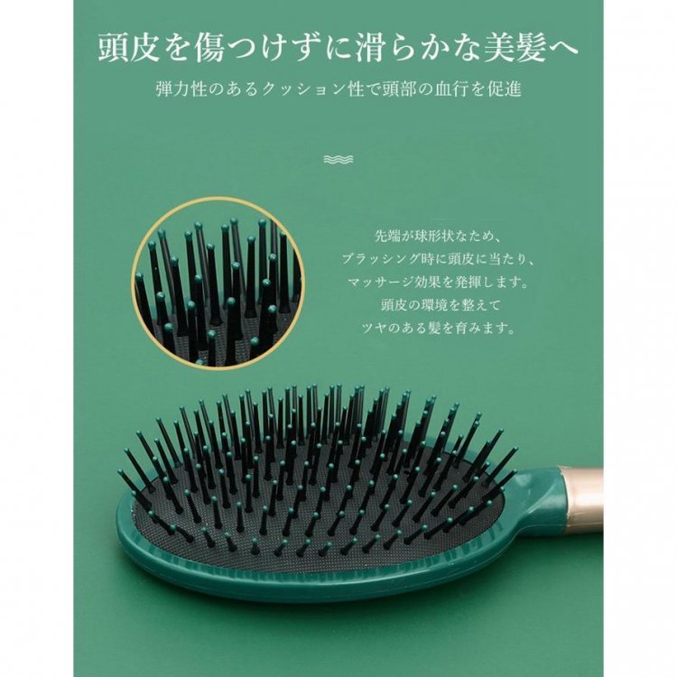 先端が球形状なため、ブラッシング時に頭皮に当たり、マッサージ効果を発揮します。頭皮の環境を整えてツヤのある髪を育みます。