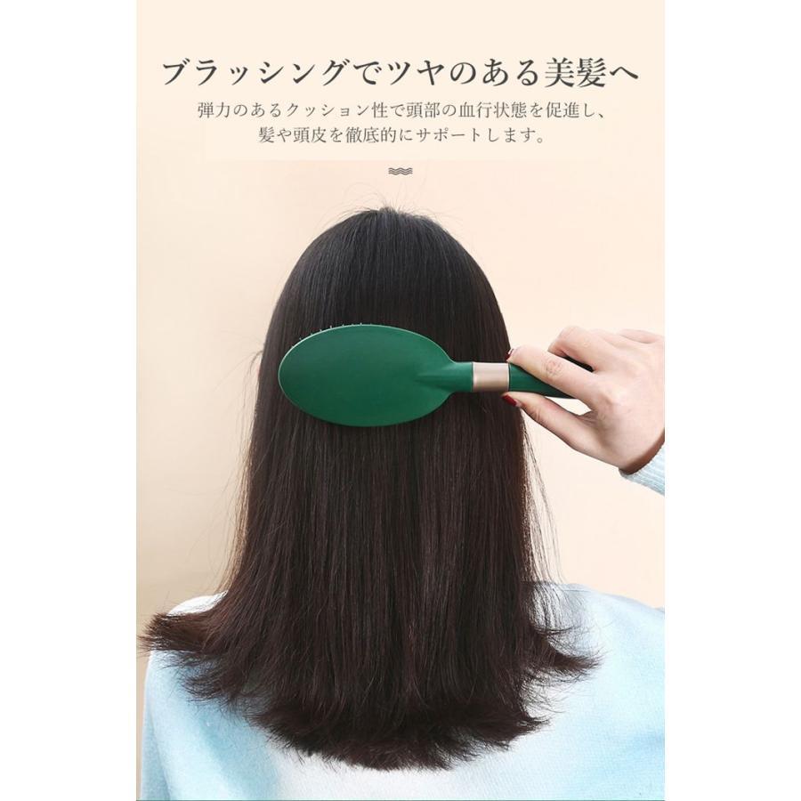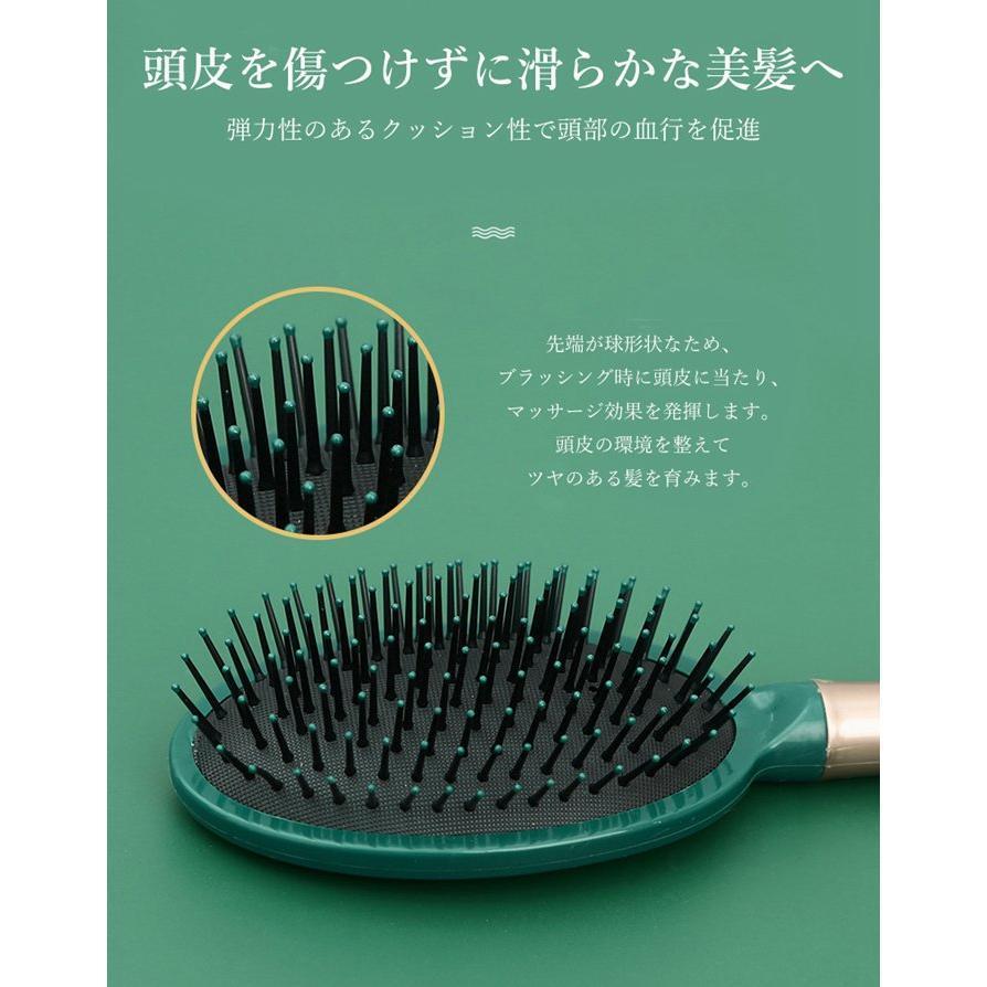 ヘアブラシは髪や頭皮を優しくケアするデザインになっています。髪を傷めずにブラッシングができるので、デリケートな髪や頭皮にもおすすめです。