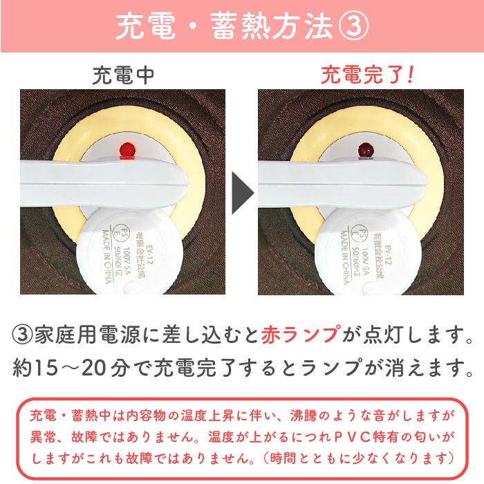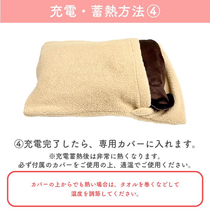蓄熱充電後は、本体表面は約60度となります。やけどに注意して、保温袋に入れてください。