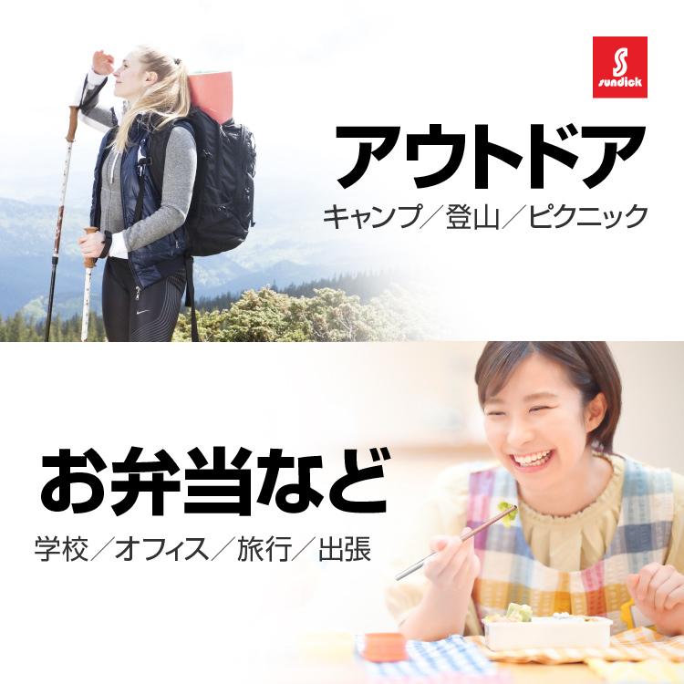 ソロキャンプやファミリーキャンプ、登山や釣りなどのアウトドアをはじめ、BBQやお祭り、行事ごとなどのレクリエーション、また学校やオフィスでのお弁当、旅行や出張などでのMY箸としてなど幅広い用途で活躍します。