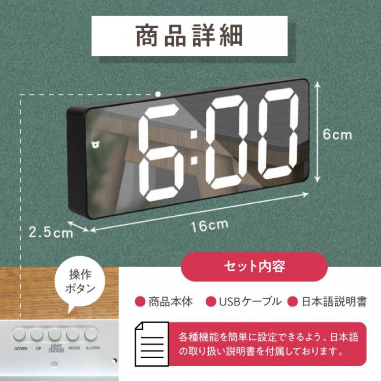シンプルなデザインで高機能なLEDデジタル時計